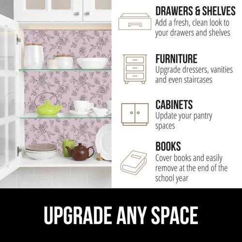 SUPERIOR PROTECTION: help protect your drawers, shelves, books, and cabinets from everyday dirt, dust, moisture and grime; made from heavy duty, textured and ultra thick vinyl, the liners help provide ultimate protection from accumulating dirt and spills STRONG GRIP: no more slipping and sliding liners; the strong adhesive backing means a powerful grip on any smooth surface; designed with a strong adhesive on the backside and printed on a premium peel and stick vinyl material that is meant to last; liners will not bubble at the edges or corners once applied, so they’re made to last for as long as you need them to; the strong grip also makes the liners a perfect fit for crafting or covering school books UPGRADE YOUR CABINETS: classic, chic and modern liners will help give any space a more appealing look; cover up any blemishes with little effort; upgrade any cabinet, shelf or drawer, crafts, books, and more MAKE CLEANING EASIER: the liners provide a smooth, even surface that helps make cleaning easy; simply wipe away any spills or debris without worry EASY TO INSTALL: easy to follow instructions on the backing make application incredibly easy; just measure, peel and stick; plus liners are easy to remove and won’t leave residue on surfaces; surface should be clean, dry, and smooth for best results; do not apply to textured surfaces Help protect your drawers, shelves and cabinets from everyday dirt, dust and grime! Made from heavy duty, textured and ultra thick vinyl, the liners help provide ultimate protection from accumulating dirt and spills. Featuring a strong grip and printed on a peel and stick vinyl material, the liners are ultra durable for long-lasting use.
