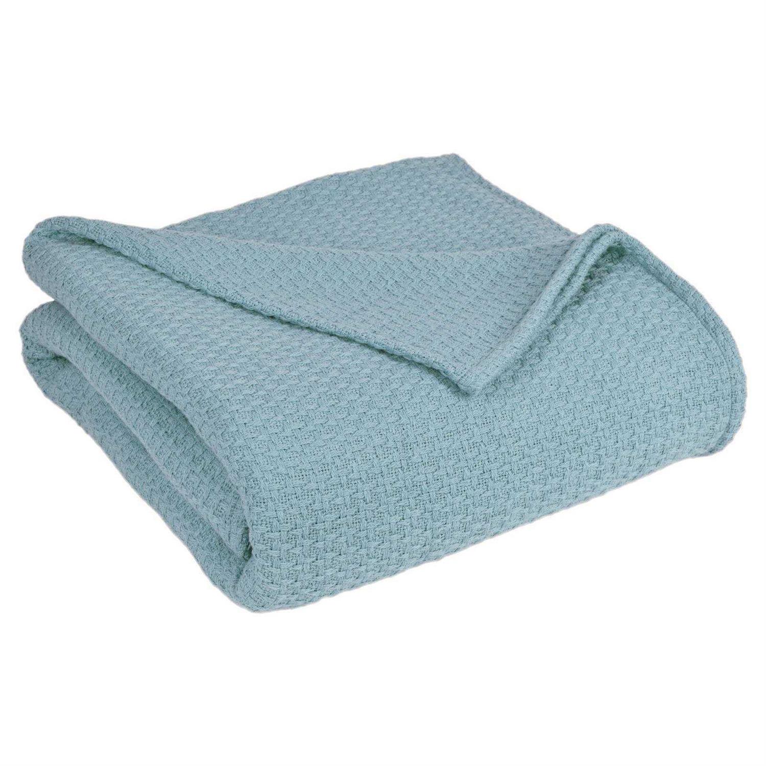 Now every night be sure you get some good and cozy sleep with this Grand Hotel Cotton Solid Blanket (Twin) Pearl Blue Elite Home. Finished with pearl blue color, this awesome blanket is made from durable cotton material with a midweight fabric. It is machine washable for easy clean and care. A great addition to your bedding collection. Gender: Unisex.