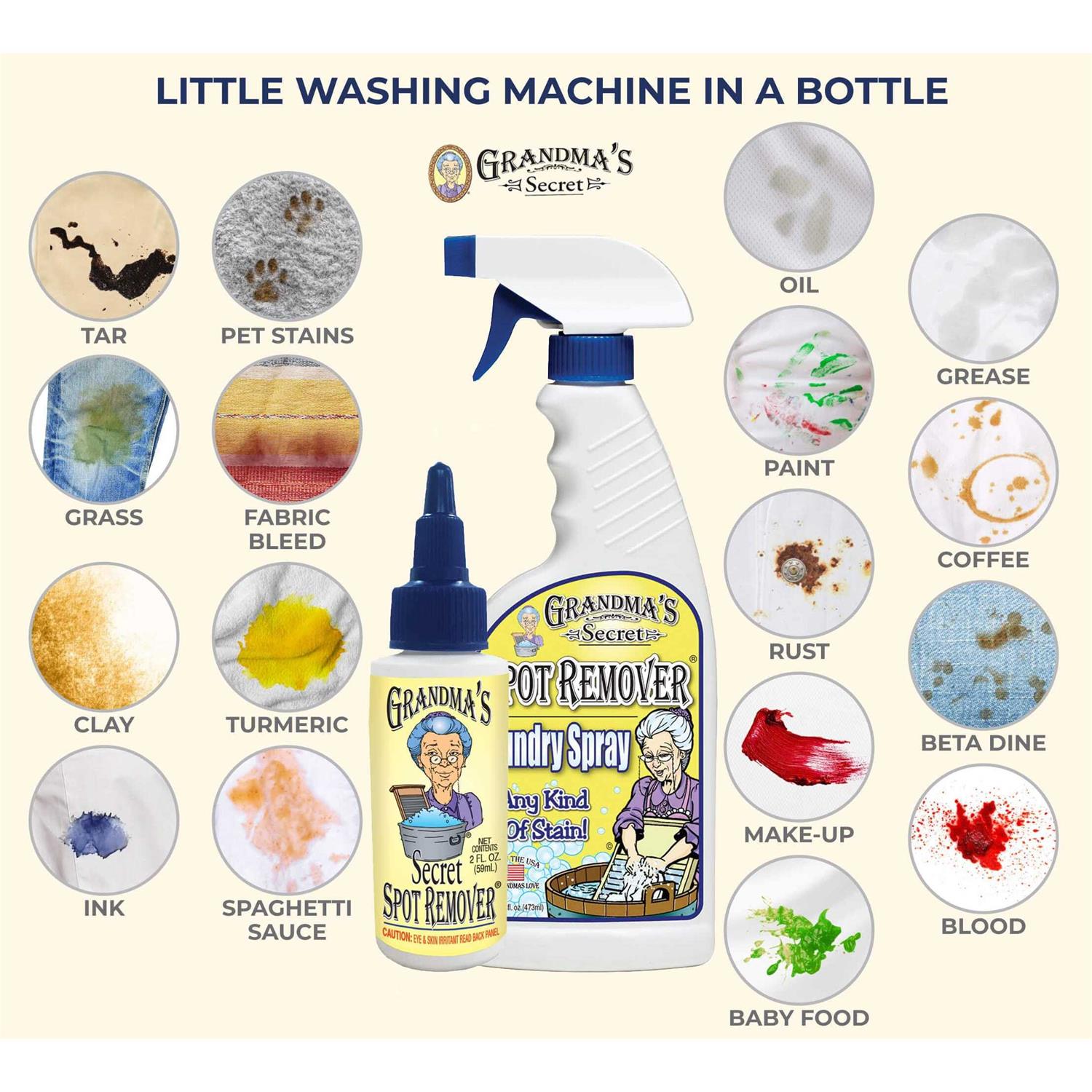 Grandma knows that you need an extra set of eyes in the back of your head especially when her granddaughter Lisa is helping out. So grandma shouldnt have been surprised when she went into the laundry room and found the floor covered with her little bottles of Spot Remover. What is all this. she asked Lisa. Grandma, she said, Grandpa makes such a mess of his stuff that I kept running out of your secret cleaner. I see, replied Grandma so you need a bigger bottle and with that in mind Grandma created the 470ml Laundry Spray. Because Grandma hates waste as much as she hates dirt.