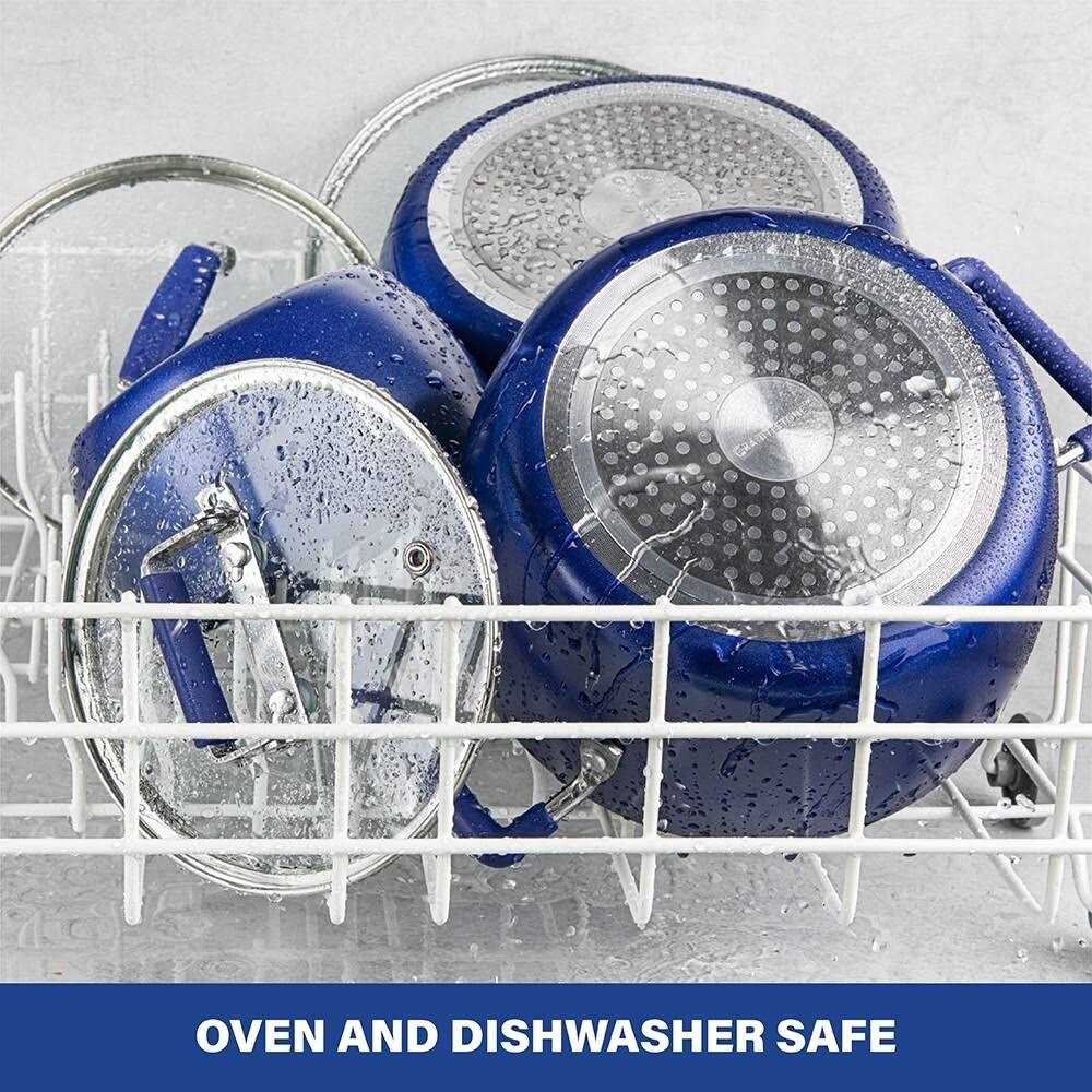 Granite Stone cookware features a mineral-infused granite coating that is the perfect blend of nonstick durability & ease of use. The Granite stone cookware is pressed from a single sheet of aluminum and layered 3 times with our proprietary coating for the ultimate nonstick experience. Our cookware requires no oil, making healthy cooking easy! The extra thick coating is super durable, scratch resistant and metal utensil safe. The pot’s sleek exterior and modern desigh will match any kitchen decor. Cool touch handles are coated with plastic and rubber for a secure grip. Ultra non-stick surface makes for easy cleanup. Steam, boil or simmer with our Granite Stone space saving nesting pots.