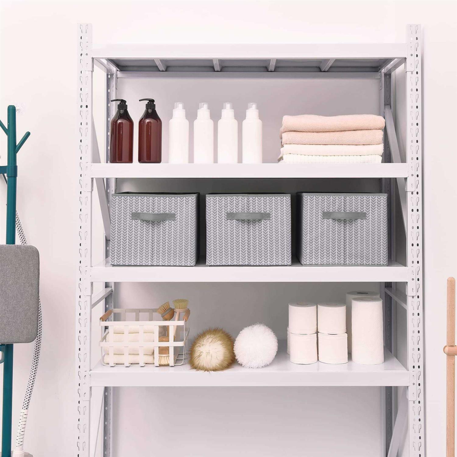 Featuring herringbone pattern, the clothes storage bins make the entire storage space look uniform, neat, and orderly. Each shelf organizer for closet has 2 fabric handles, making it easy to pull out and move from wardrobe shelf or floor. The lidless canvas storage bins let you find stuff at a glance, especially helpful to organize changing tables, wardrobe shelves, desktops, etc. Versatile storage use, the linen closet organizers and storage baskets are ideal to be used as linen containers, laundry baskets, accessories organizers, and more.