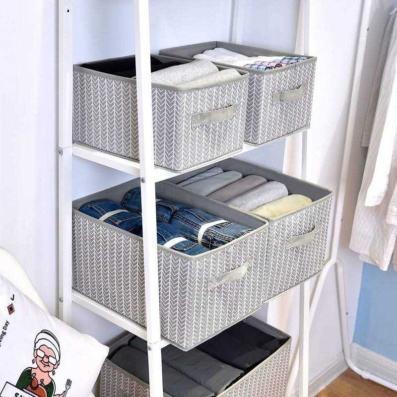 Easy-to-assemble storage bins with thick cardboard and 2 handles. Ideal storage organizer for towels, tee shirts, accessories, magazines, and more at the home, living room, den or office. The lidless design makes it easy for you to find what you need without rummaging around. Collapsible design of this storage basket makes it convenient to save space and take along. You could simply fold it up when you don’t use it or when you need it for travel use. Storage box measures 14.4-Inch x 10-Inch x 8.3-Inch, 100% polyester.