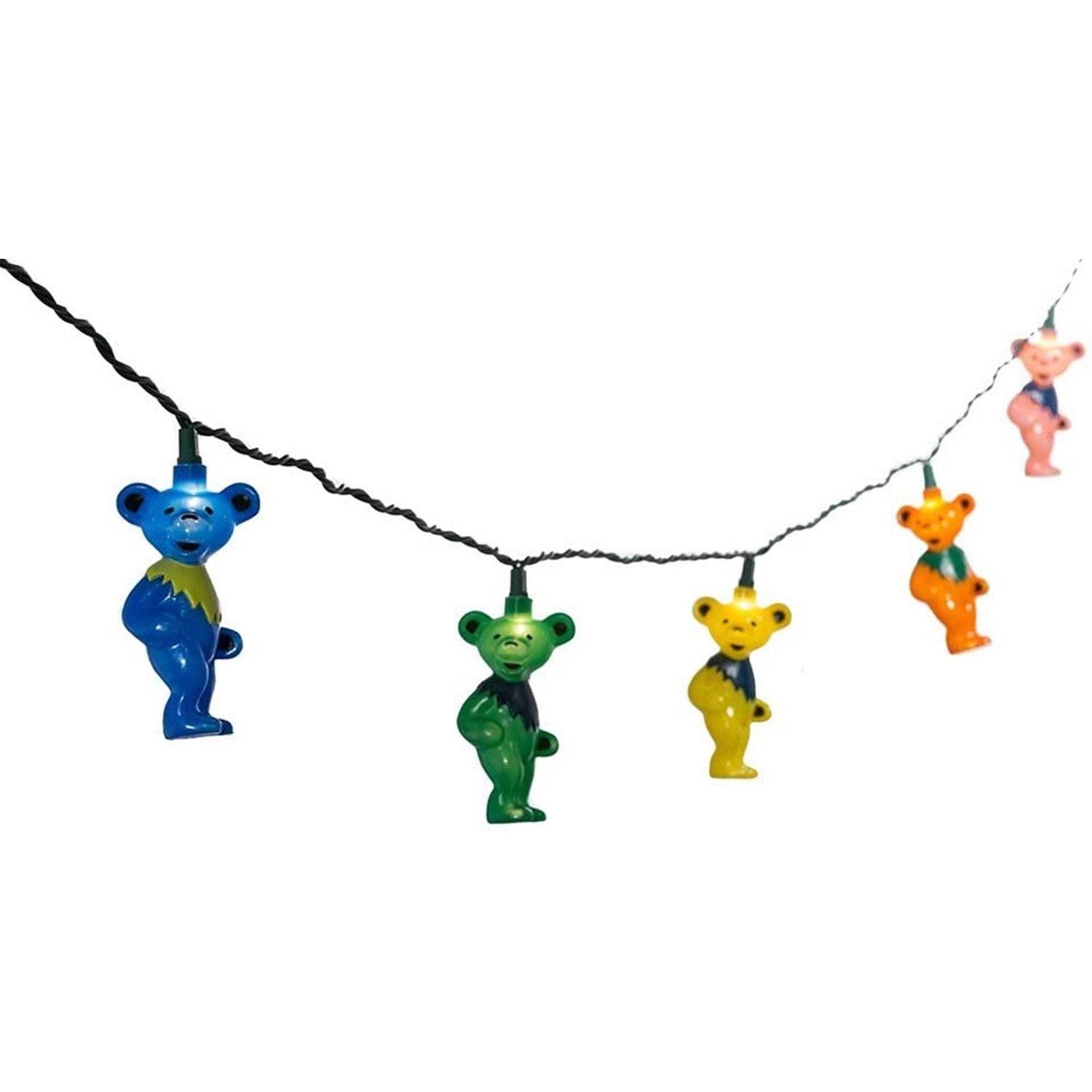 This string light with the iconic bears from History of the Grateful Dead, Volume One (Bear’s Choice) is a great way to make your holiday a bit more electric this year! Key Product Features Officially-licensed Grateful Dead light set 10 UL listed clear incandescent lights 30-inch lead wire 12-inch light spacing Includes 4 spare bulbs and 1 fuse For both indoor and outdoor use Measures 11.5-feet long – great for hanging above doorways! Bring the fun of the Grateful Dead to any holiday or theme party décor with this these dancing bears light set from Kurt Adler, featuring the colorful dancing bears from the Grateful Dead! At 11.5′ long, this string of lights can be used to wrap small tree, stair banisters, and for decorating doorways. Great gift idea for fans of the classic band!