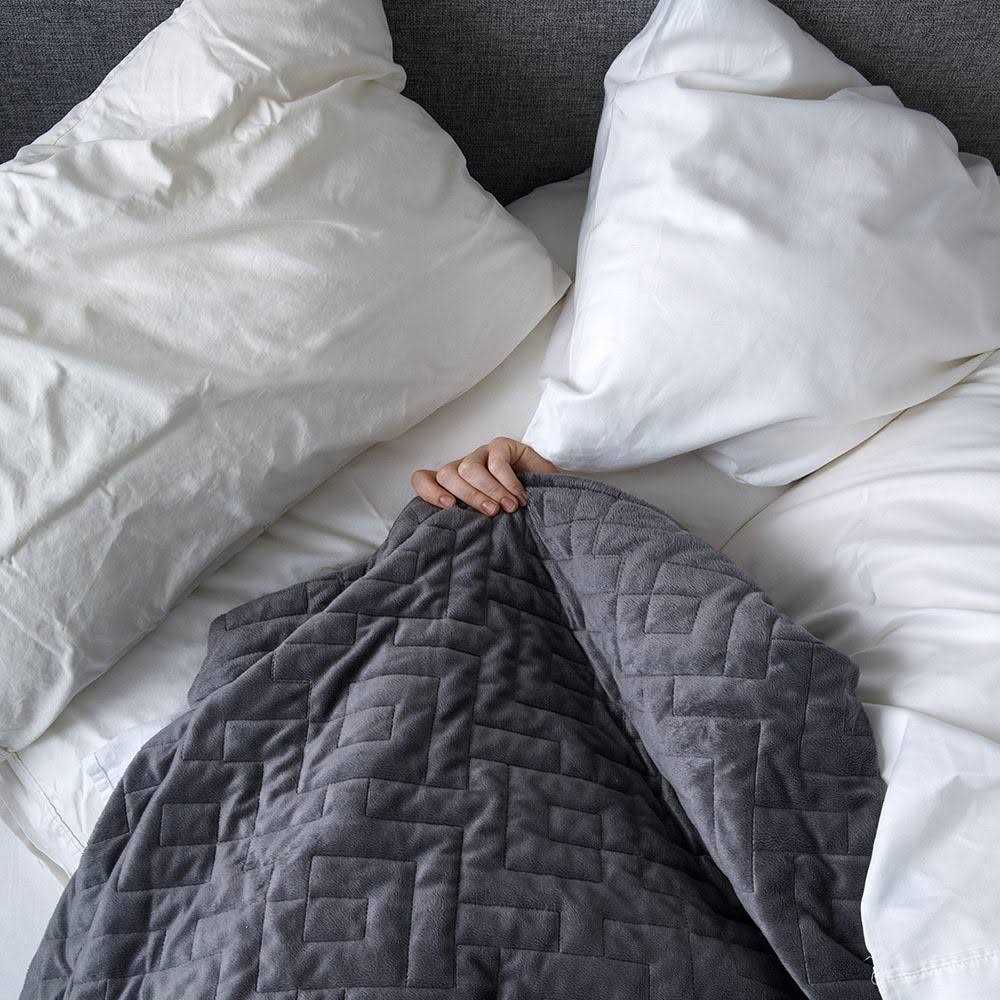 Trouble sleeping? Gravity is a premium-grade weighted blanket that uses light weight on the body to improve sleep quality. The latest generation of Gravity’s Original Blanket features internal upgrades while maintaining the blanket’s signature look and feel. Do not simply choose the heaviest option as “more heavy” does not equal “more effective”! You want one that’s closest to 10% of your own body weight. DIMENSIONS: Gravity is sized 72” x 48”, providing a grounding experience for ONE USER at a time. CONSTRUCTION: Exterior duvet cover is made of super soft micro-fleece. Interior weighted blanket is made of cotton and fine-grade glass beads, and is held in place inside the duvet cover by our new, upgraded zipper system. Gridded stitching on the weighted inner ensures the glass beads remain uniformly distributed during use. CARE: Duvet cover is machine washable; internal blanket is hand-wash only. The Gravity Blanket is engineered to be 10% of your body weight to simulate the feeling of being held or hugged. This can help you feel calm and relaxed, and helps to promote restful sleep.