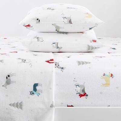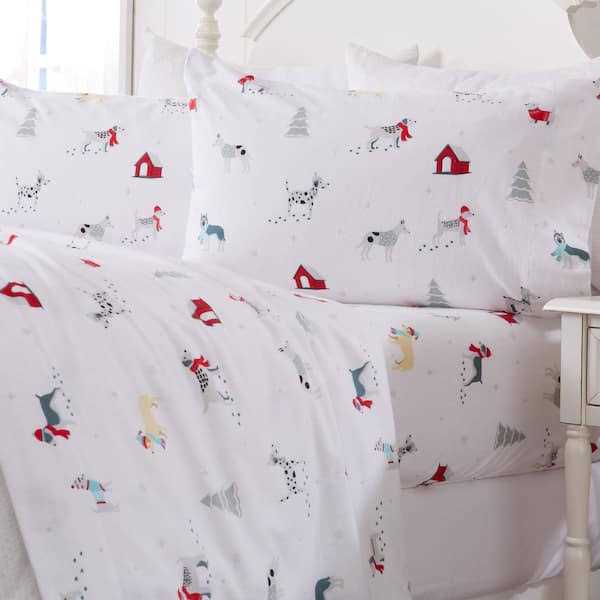Cozy up with fun winter and holiday printed flannel sheets. These soft and comfortable sheets will wrap you in unmatched warmth while still being breathable, making them the go-to flannel sheet set for the winter. The winter prints will add a fun and playful side to your bedroom decor and make styling fun. While these sheets are super fun, they don’t compromise on durability and quality. These can sustain multiple washes and get softer with each use. Color: Pups in the Snow.