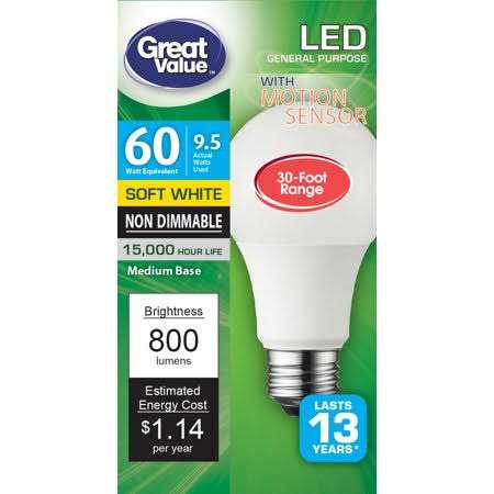 Great Value LED Light Bulb A19 Motion Sensor Lamp E26 Medium Base