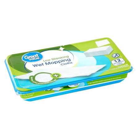 Great Value Wet Mopping Cloths: Wipes away dirt – grease and grime Low streak formula Fits Swiffer Mop Heads54801229