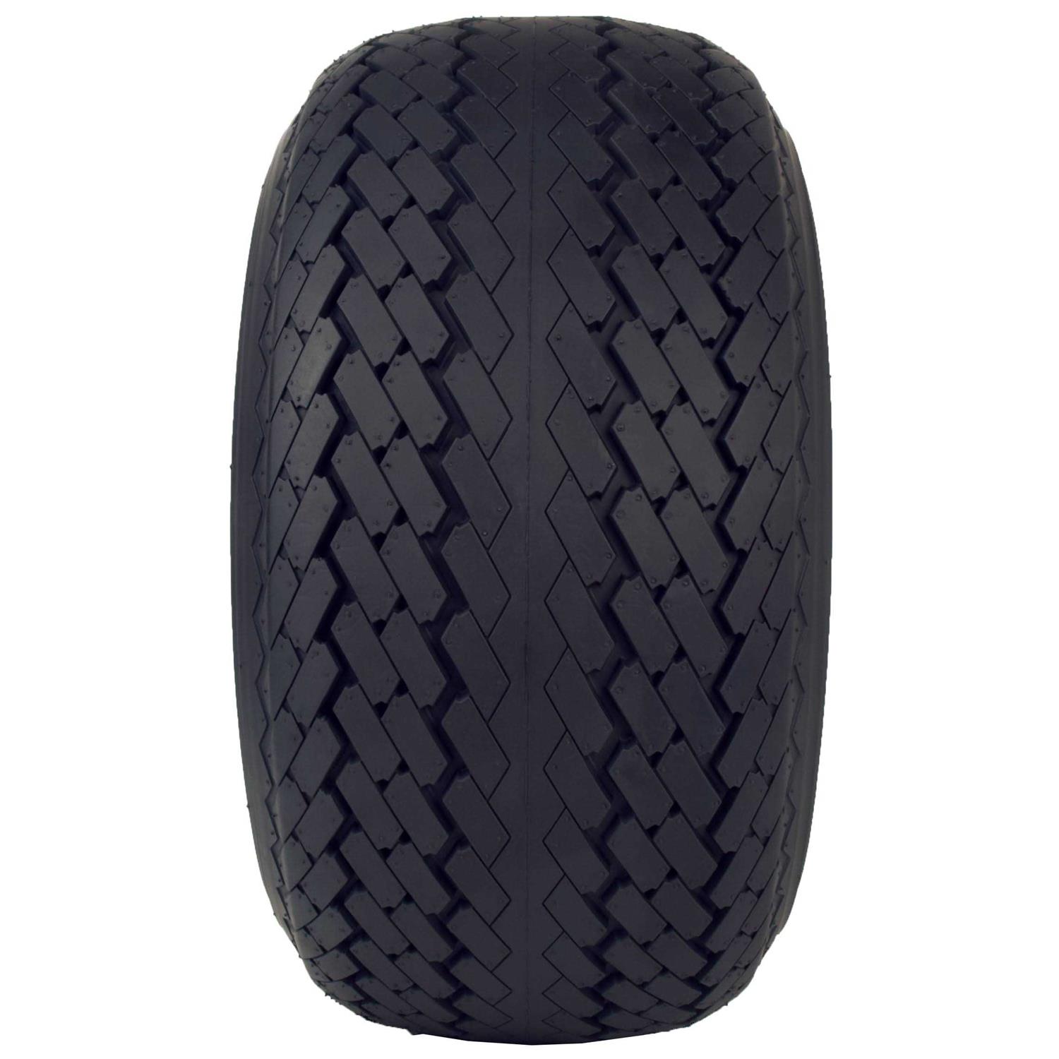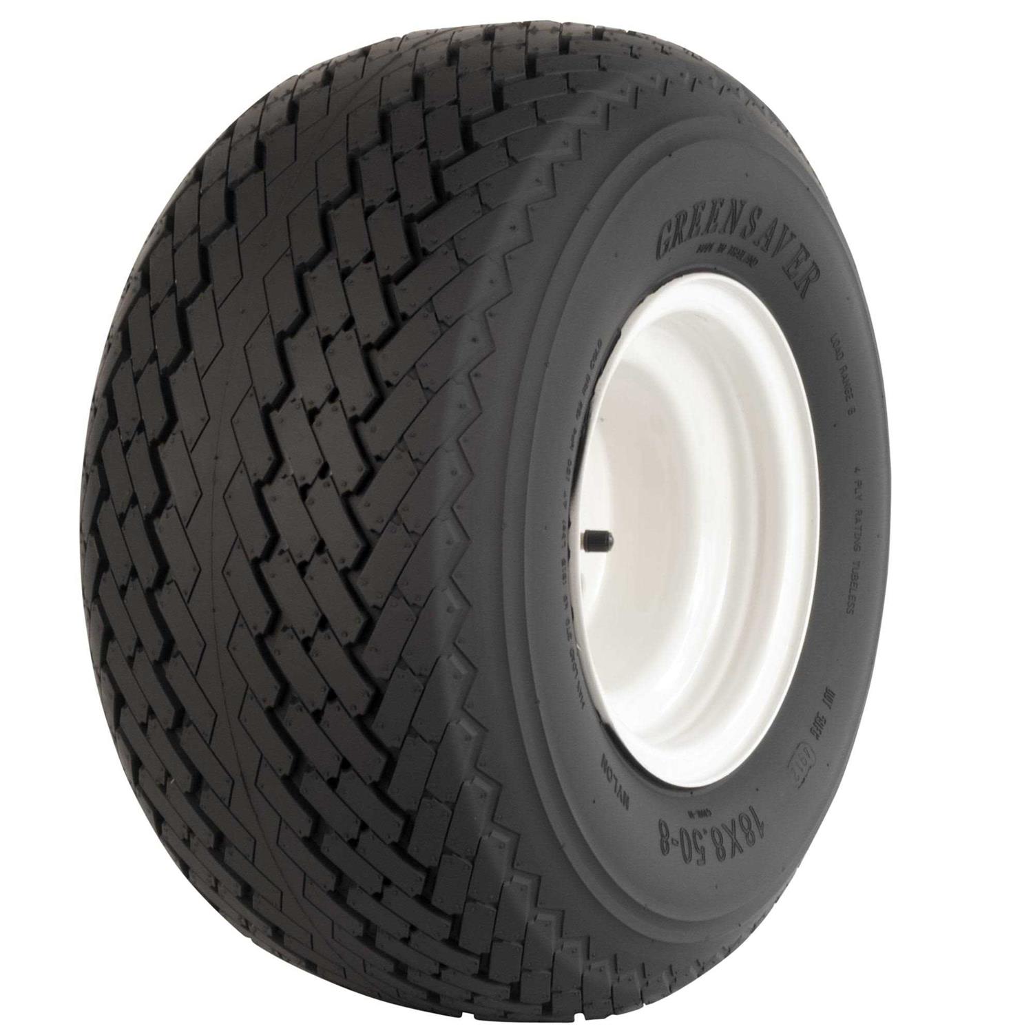 The Greensaver Plus 18x 8.50-8 golf cart tire boasts a versatile design that allows it to be used on both grassy and paved surfaces. An OE replacement tire, the Greensaver fits a diverse range of golf carts and carting applications. Featuring a solid center rib design, it allows for even weight distribution and excellent traction without tearing up the turf. Its wide tread also helps promote a longer tread life and an overall smoother ride.