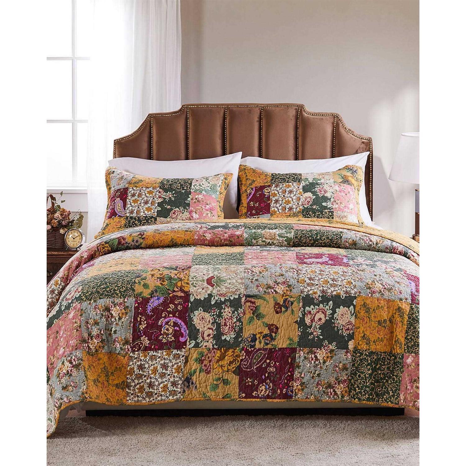 Sleep in comfort and style with the Antique Chic Quilt Set. Its Charming floral prints and paisleys overstitched with vermicelli quilting enhance your bedrooms decor. The cotton quilt set for durability and surface texture combines the comfort of 100% cotton with style. The finely stitched quilt set comes oversized to occupy the entire bed and gives it a beautiful look. It also comes with two pillow covers of the same design. The quilt is finely stitched with vintage rose bound edge and back that ensures durability matched with outstanding design. Maintaining the quilt set is an easy task, it can be machine washed and dried.