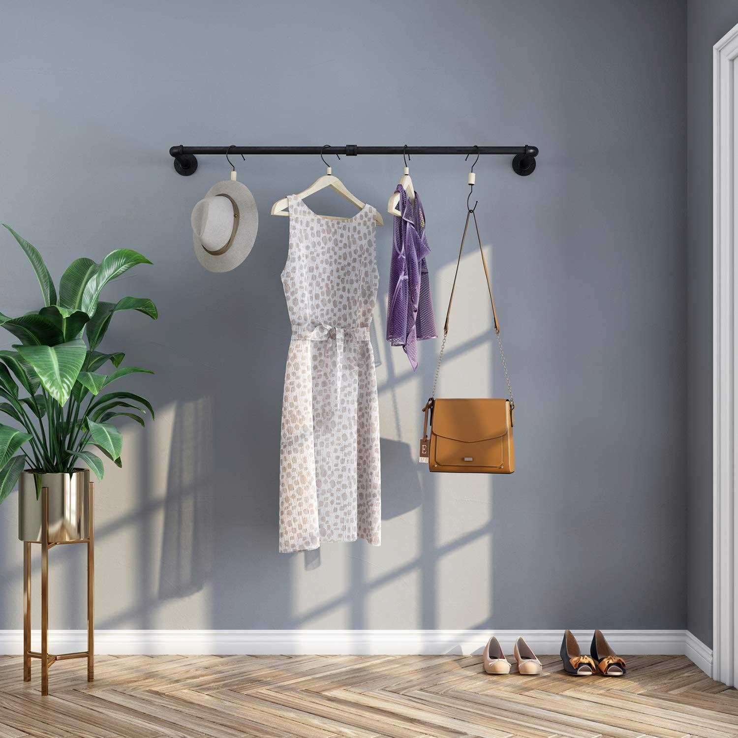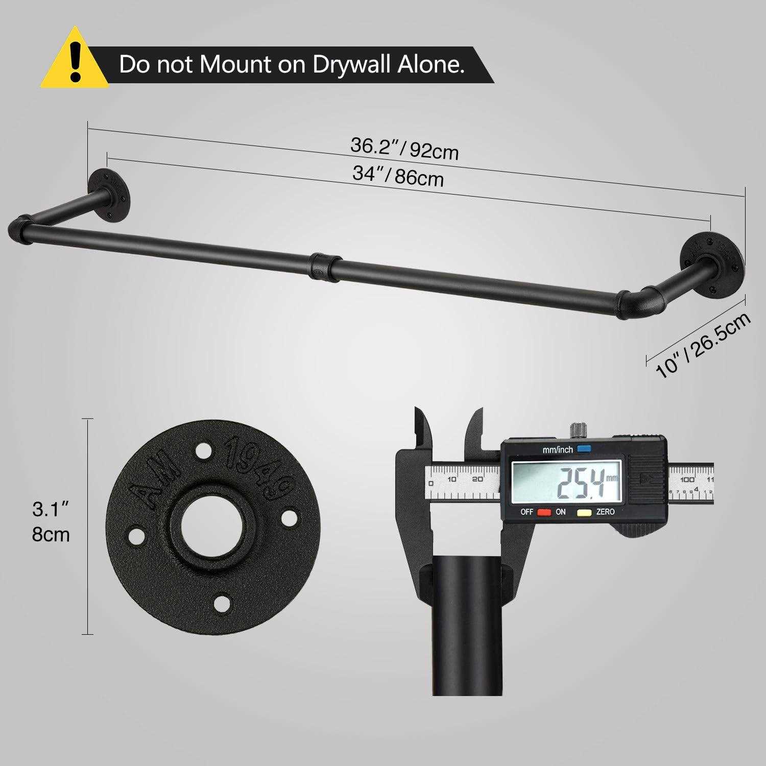 About The Item: Industrial And Retro Design: This Clothes Rack Is Made Of High Quality Iron Pipes, Smooth Matte Black-finished Surface, Industrial Chic Modern Rustic Steampunk Farmhouse And Urban Looking Furniture. Its Unique And Vintage Look Is Great In Your Room And Could Be Also Used In A Hallway, Entryway, Bedroom, Closet, Laundry Room Or Balcony. Sturdy And Durable : This Garment Rack Is Very Sturdy Installed On Solid Wall. This Item Includes Hardware To Mount On Concrete,tile Walls Or Oth.