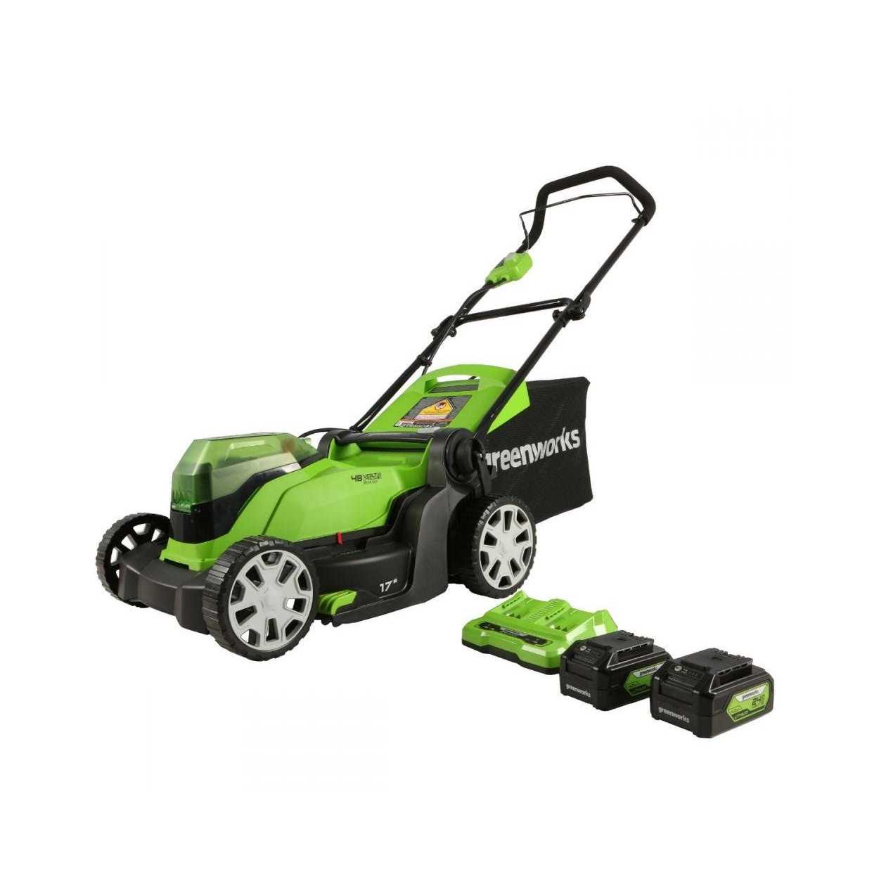 Greenworks 48V 17 in. Lawn Mower, 2 x 4Ah Batteries and Dual Port Charger Included
