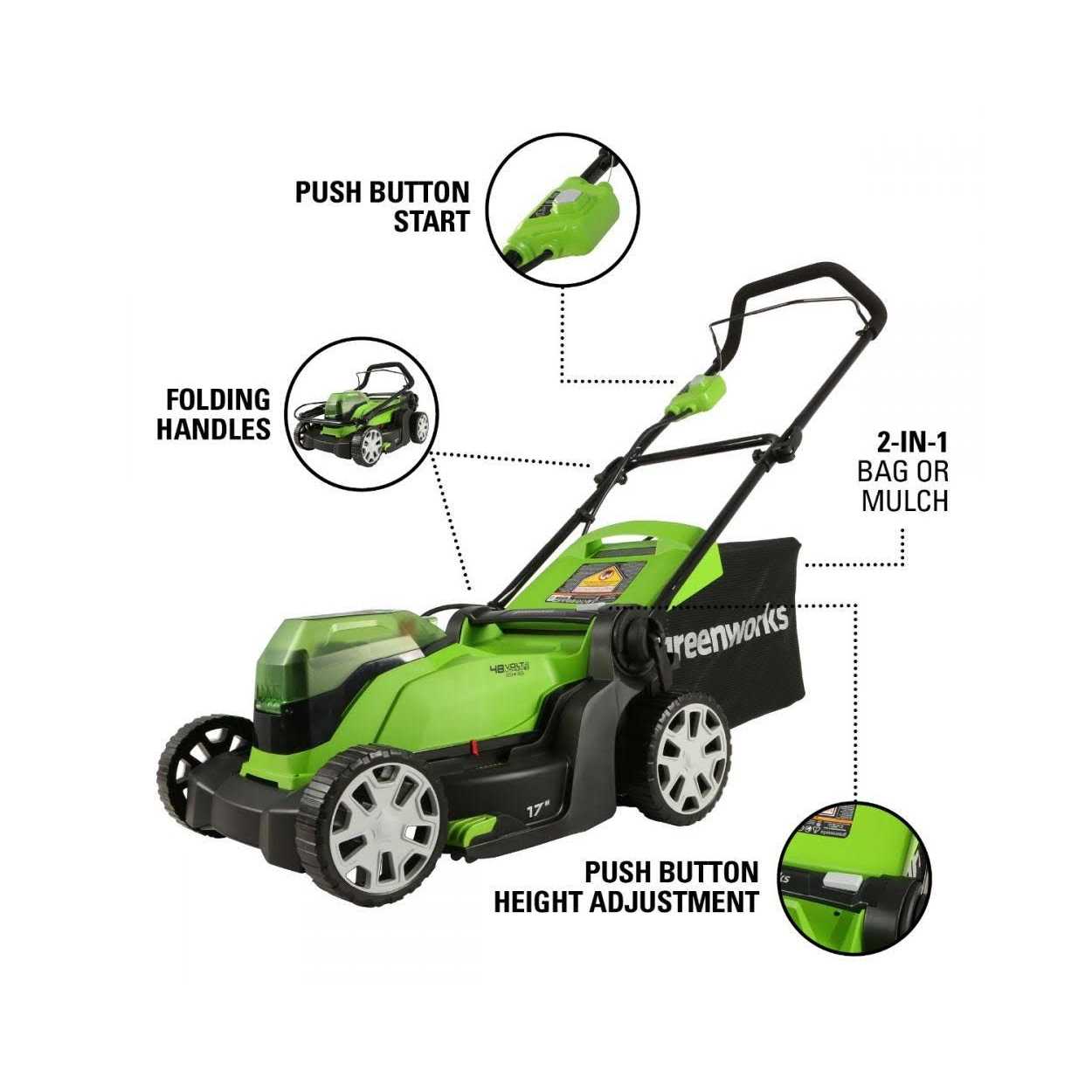 Be the first to review “Greenworks 48V 17 in. Lawn Mower, 2 x 4Ah Batteries and Dual Port Charger Included”