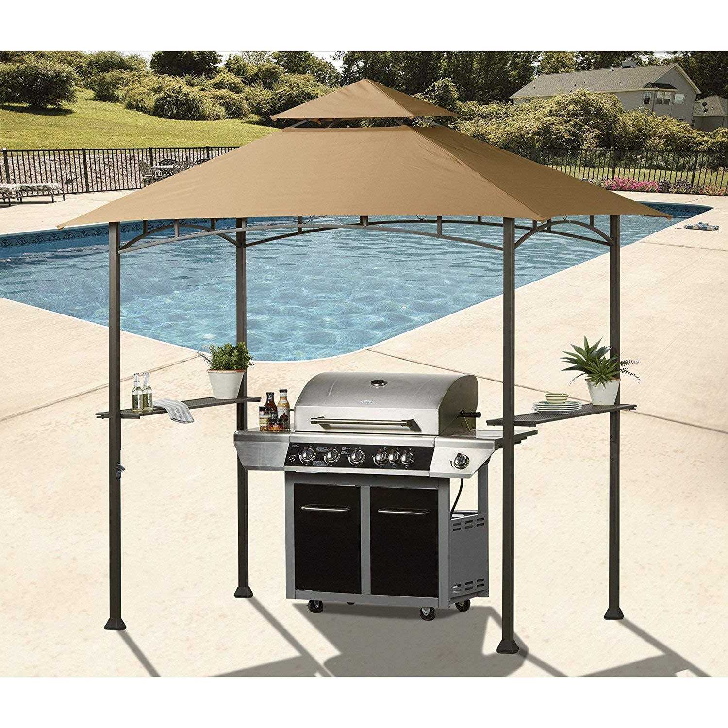 Replacement canopy only. Metal frame not included. This replacement canopy fits the grill gazebo model number l-gz238pst-11. Color: beige (different from original).garden winds is the trusted and leading manufacturer of replacement canopies for gazebos and swings. Fabric: polyester, uv treated, water-resistant, cpai-84 fire retardant, upf 50+.