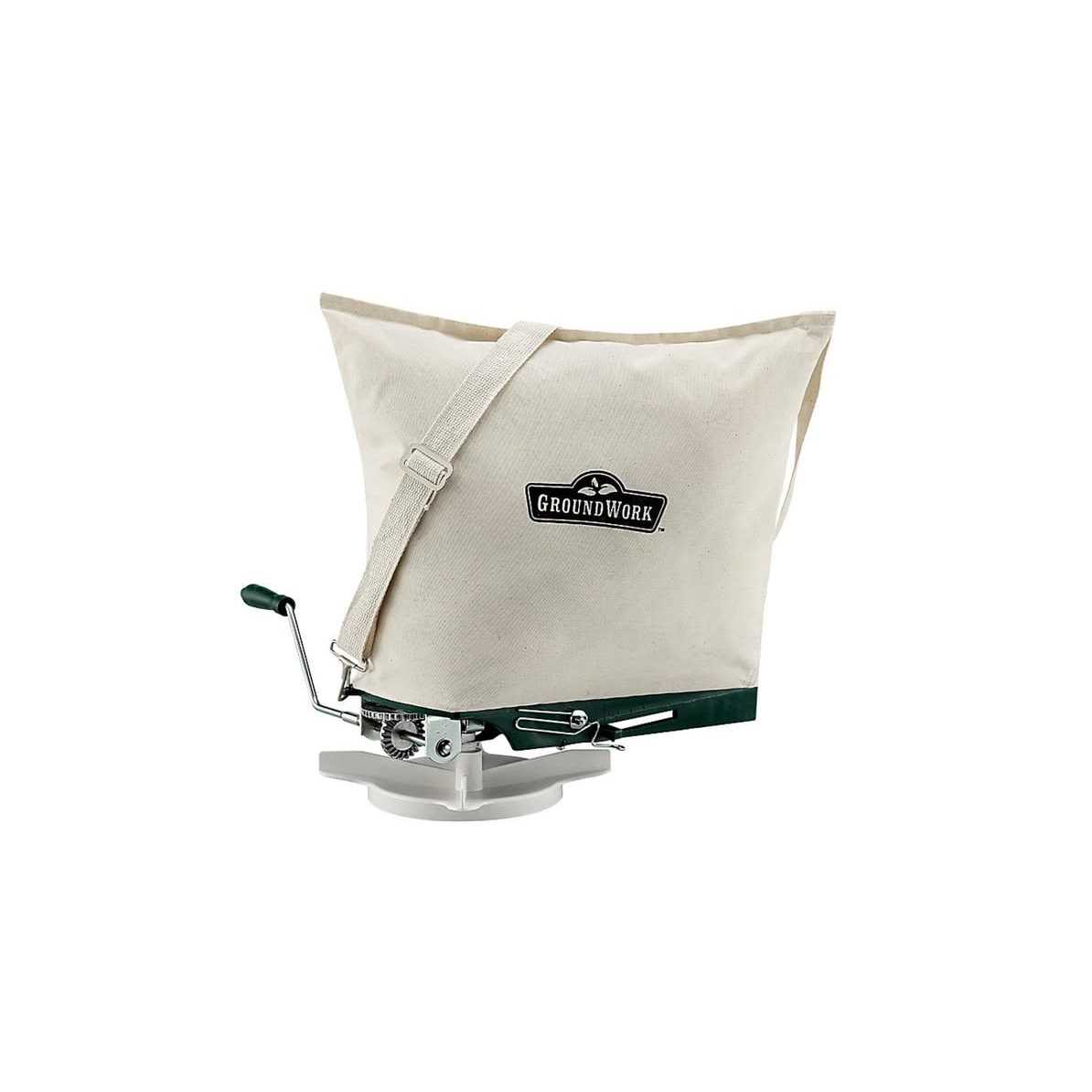 Distribute seeds, fertilizers, granular and other lightweight materials evenly across your lawn with the GroundWork Broadcast Spreader. This lightweight spreader features a calibrated flow-rate adjuster with a calibration chart. Zipper-top canvas bag with adjustable shoulder strap Calibrated flow-rate adjuster with calibration chart Dual handle, all metal gears Ready to use in seconds; no tools required Dimensions: 7.0 in. x 16.5 in. x 17.5 in.
