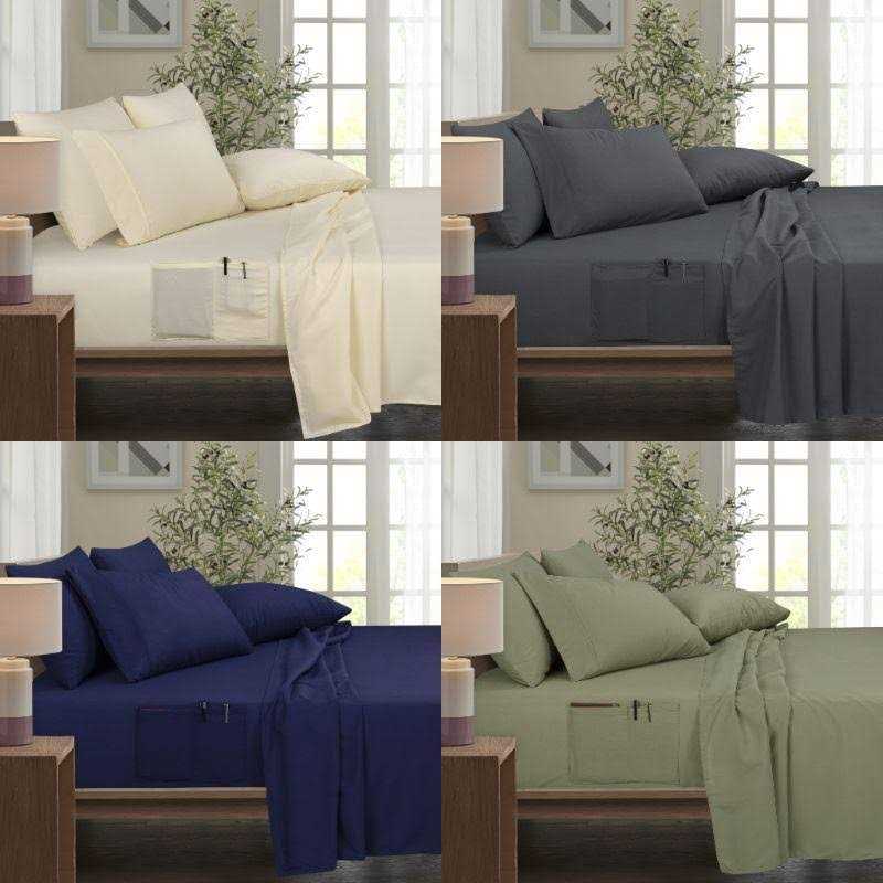 Never flounder for your reading glasses, cell phone, remote control, nightly medications, notebook, pen, or some tissues for when you have the sniffles – they’re safely tucked into these thoughtful storage pockets on the side of your bed. These beautiful sheets will enhance the look of your bedroom with their vibrant styling. The wrinkle-resistant and incredibly durable design will pamper you all night and leave you feeling rested. Ten color options range from neutral to bold to suit any style.