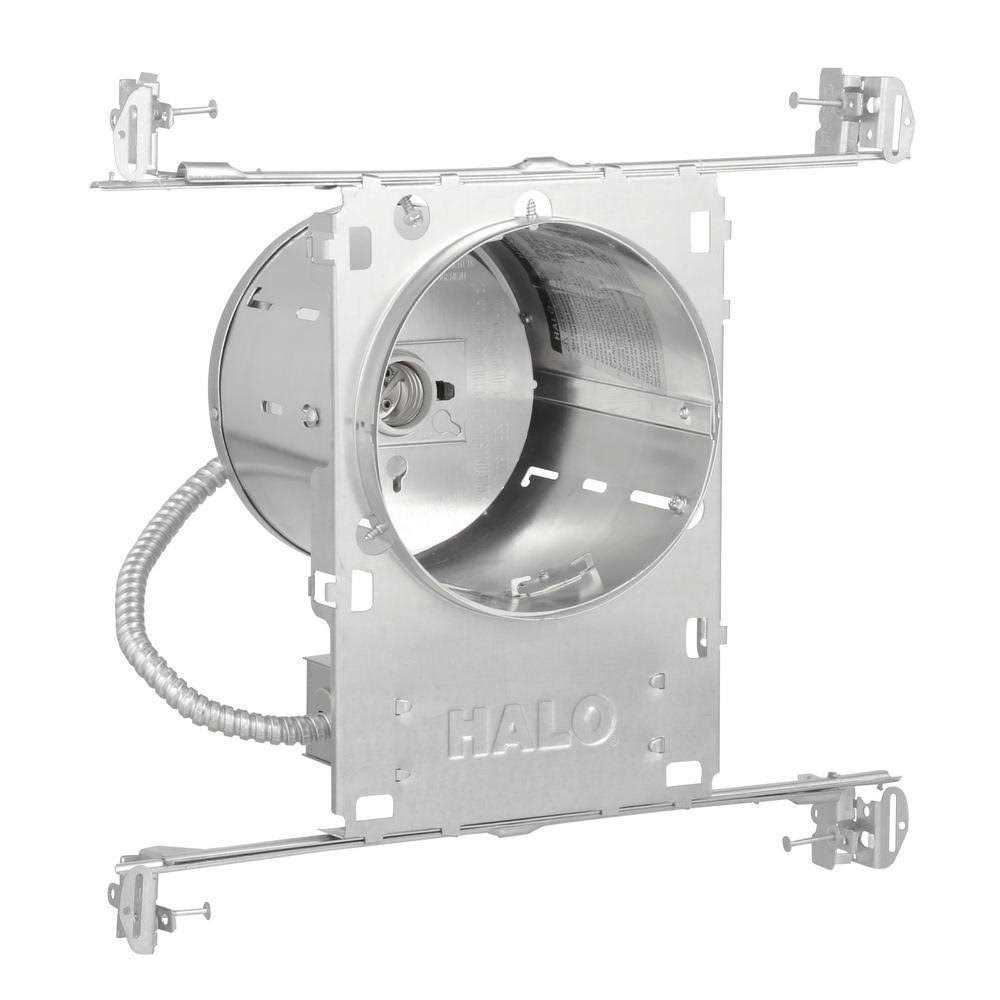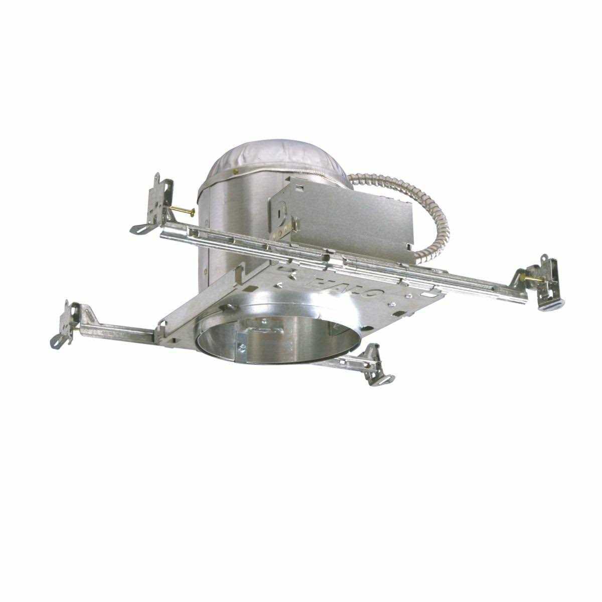 Cooper Lighting Halo 6-Inch Recessed housing in silver color measures 10.500 Inch x 7.500 Inch x 7 Inch and is made of aluminum housing for greater heat dissipation. Housing is designed to prevent airflow between living spaces and unconditioned areas. It has Pass-N-Thru tool-less shortening of bar hangers with slide-N-side wire traps. It features quick connect wiring connectors included in junction box with seven 1/2 Inch pryout knockout and is thermally protected. Housing can be removed from plaster frame for junction box access. It does not contain socket bracket for the use with socket supporting trims and is ideal for commercial/residential. It has 6.500-Inch aperture.