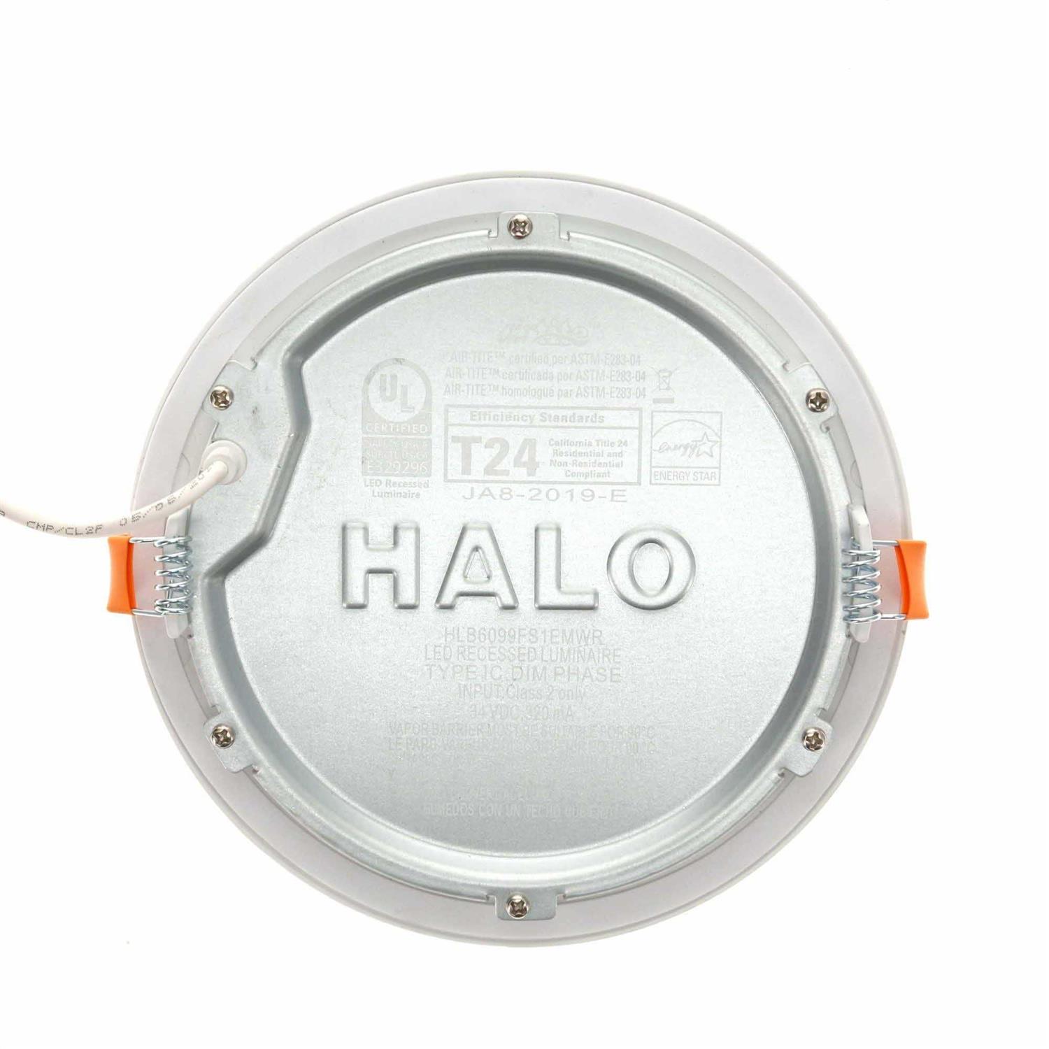 Halo HLB6 Round, Selectable Series Downlights are complete 6 in. ultra-thin canless recessed lights designed for use in new construction, remodel and retrofit installation, without needing a housing or j-box. Ultra-slim design goes where LED can lights cant. Choose your color temperature directly on the fixture. With the flick of a switch, you can choose between 5 color temperatures ranging from warm (2700K) to daylight (5000K) prior to installing into your ceiling. This Halo recessed lighting fixture features an LED driver that offers 120-Volt dimming capability. The HLB6 LED recessed lighting lens provides uniform illumination and wet location listing. (4 recessed lighting fixtures included).