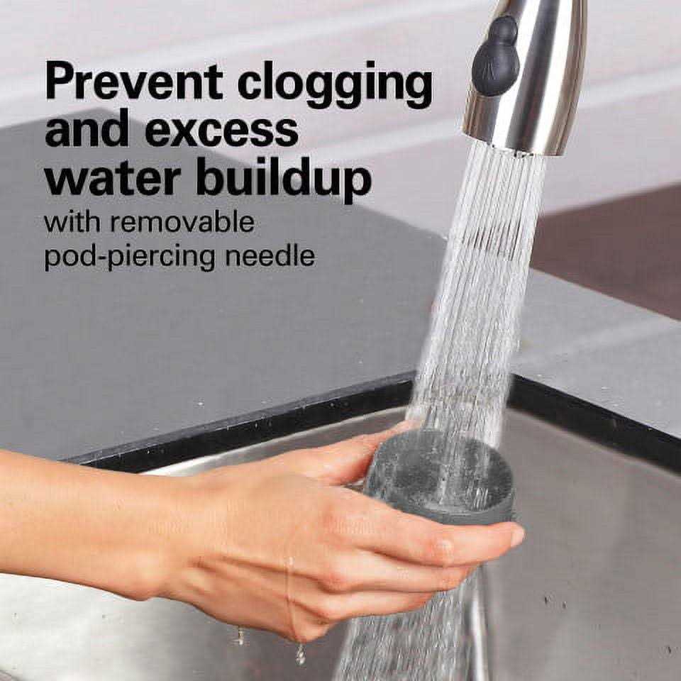 The Hamilton Beach FlexBrew Trio Coffee Maker lets you brew 3 ways. On the single-serving side, you’ll enjoy fast brewing every morning because it brews a single cup in about 90 seconds. The single-serving side lets you brew multiple cups without refilling the 40 oz. water reservoir and provides multiple brewing options. You can brew a single cup with your favorite brand of pod (such as a K-Cup* pod) or brew with ground coffee. Using a pod lets you brew up to 10 oz. of coffee, and brewing with coffee grounds lets you brew up to 14 oz. of coffee into a travel mug. On the carafe side, you can brew up to 12 cups of coffee with your favorite grounds, plus you can set up wake-up ready coffee with Easy-Touch programming and pour yourself a cup before brewing is finished with Auto Pause & Pour. After brewing, coffee stays warm in the carafe for 2 hours, then the power automatically shuts off. No matter how you brew, Select-a-Brew lets you choose bold or regular brewing strengths. Includes a glass carafe, single-serve pod holder, single-serve brew basket and a cup rest with a storage area for either.