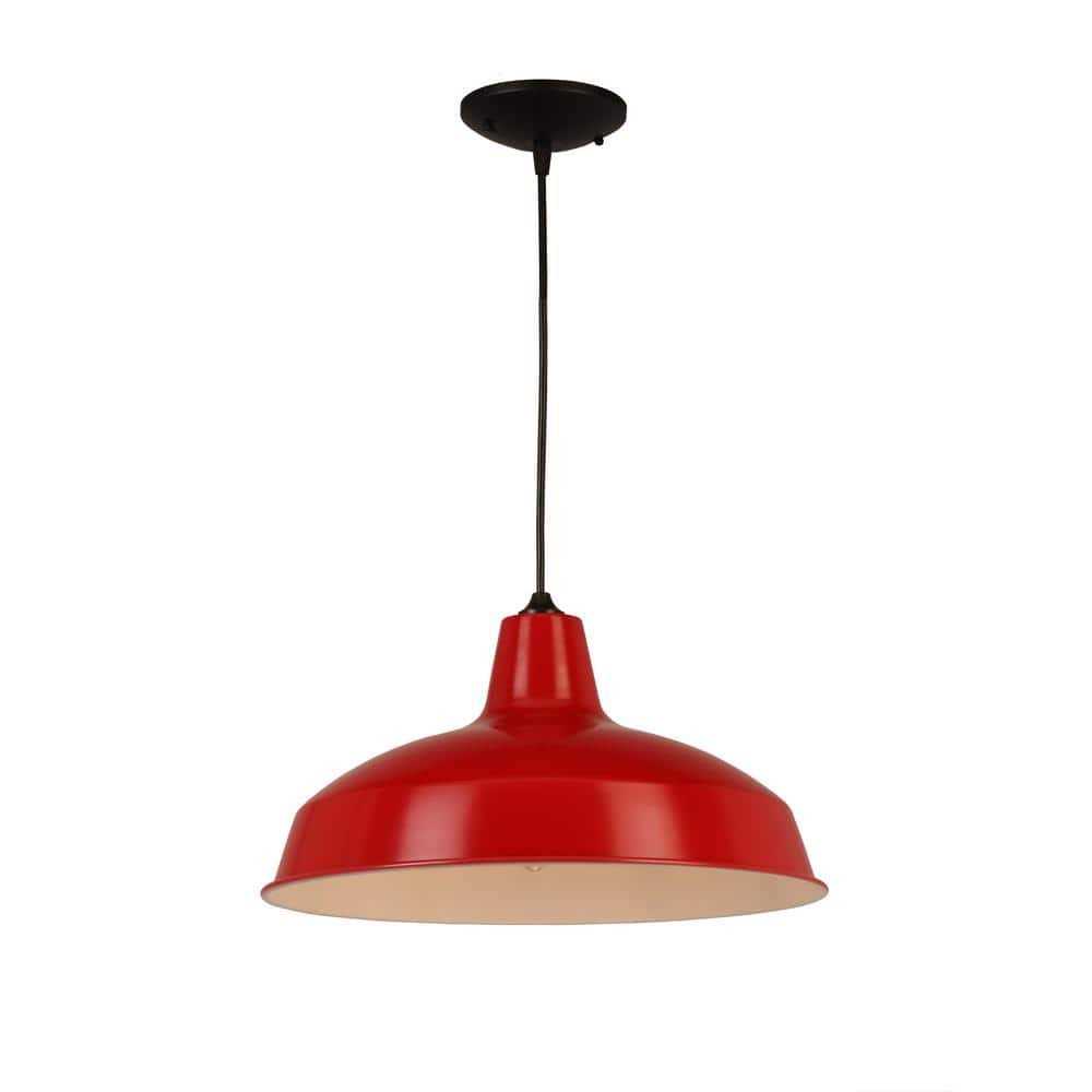 Bring new light into your home with this Hampton Bay 1-Light Bright Red Warehouse Pendant with Metal Shade. The adjustable hanging length makes for an easy installation. This bright red pendant is a great choice for your living room, garage, den or more.