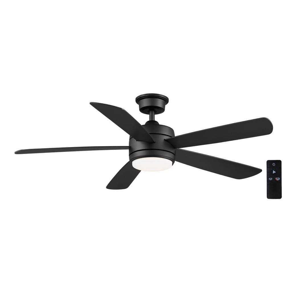 Hampton Bay Averly 52 in. Integrated LED Matte Black Ceiling Fan with Light and Remote Control with Color Changing Technology AK18B-MBK