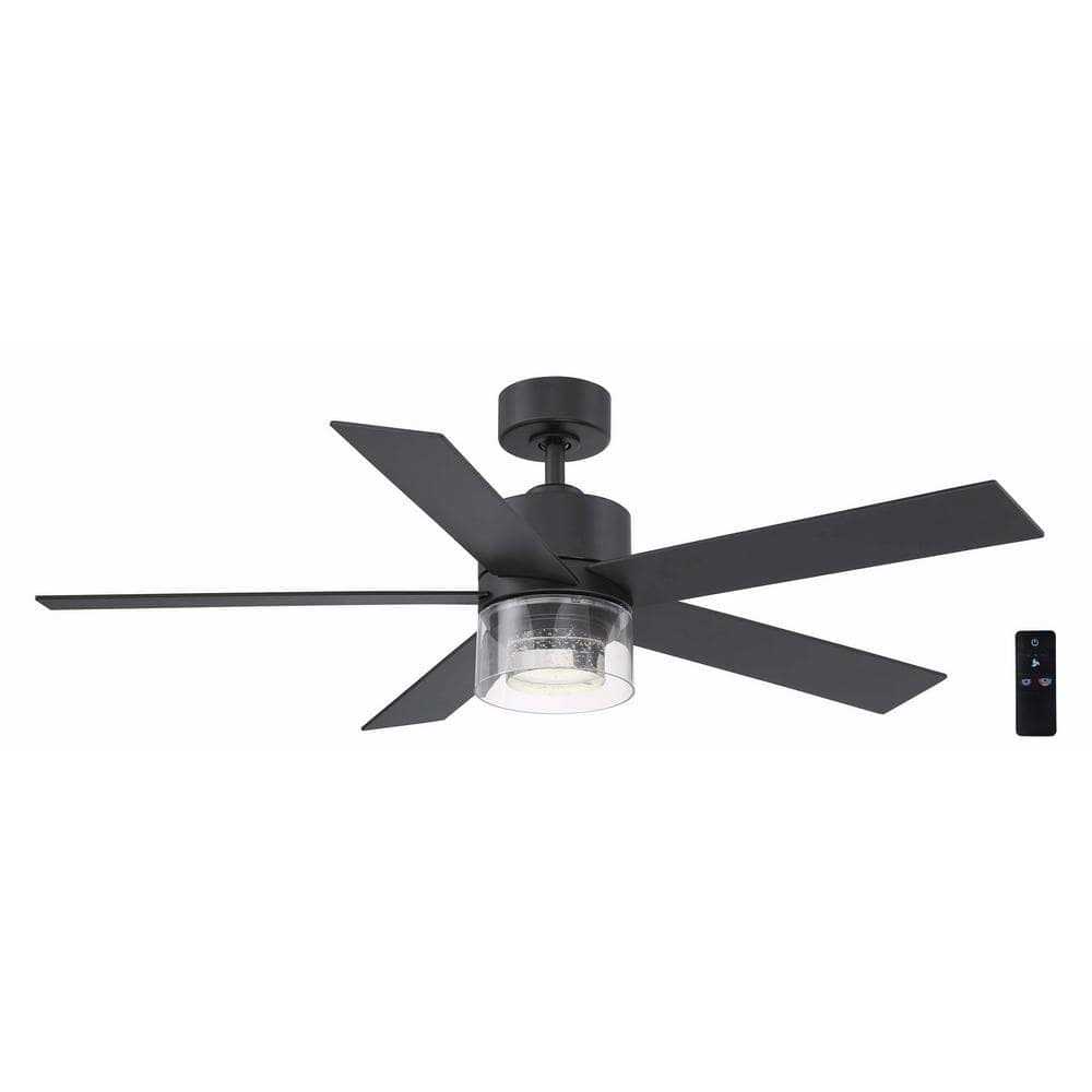 The Hampton Bay Crysalis Matte Black Ceiling Fan is the perfect addition to modern indoor spaces. Includes an integrated LED light with bubble glass and 3000/4000/5000 K temperature options. with the 3-speed reversible control, you can use this fan all year long.