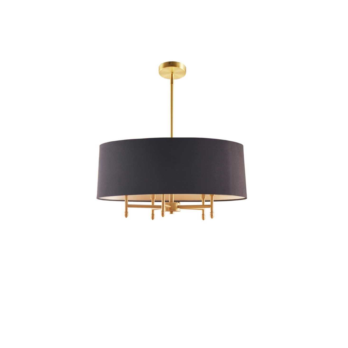 Introduce a gorgeous transitional look to your decor with Hampton Hill’s Presidio Chandelier. Featuring a black tapered fabric shade that is able to tilt, this transitional chandelier adds a touch of elegance with the plated brass finish on the metal frame and ceiling cover. The ceiling drop down height is 45-inches with a 10-inch black cord to perfectly fit your space. Hardwire this chandelier to your ceiling, but not on a sloped ceiling to create a stunning display to illuminate your kitchen or living room. Five Type-B 40-watt incandescent bulbs or five 9-watt CFL light bulbs are needed. Mounting hardware and professional installation is required.