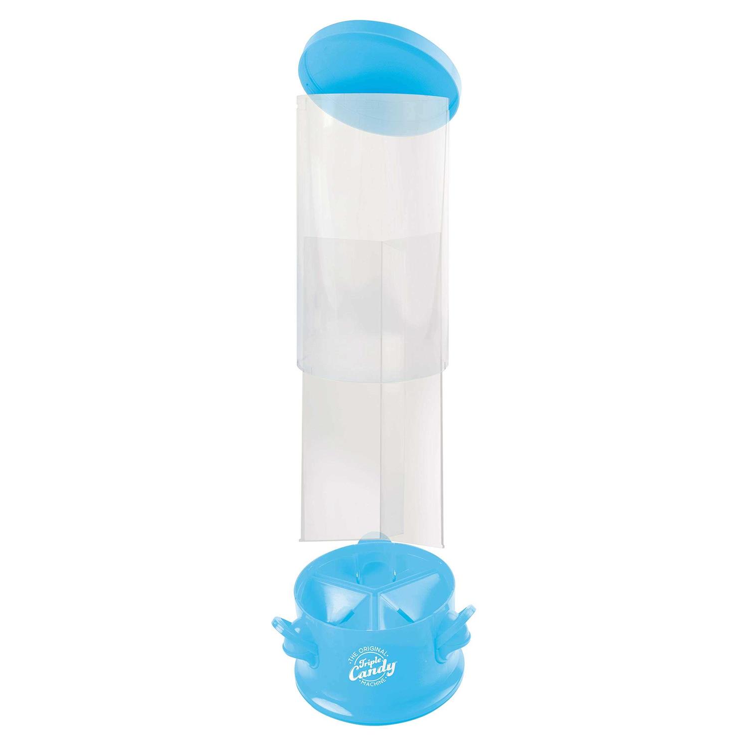 Germ Free Candy Dispenser No more hands in the candy dish with this triple compartment candy machine with fingertip dispensing. Fill each compartment with your favorite candy and nuts, perfect for celebrations or everyday treats. 360 degree rotating base. The cover and base twist off for easy cleaning. Red or white.