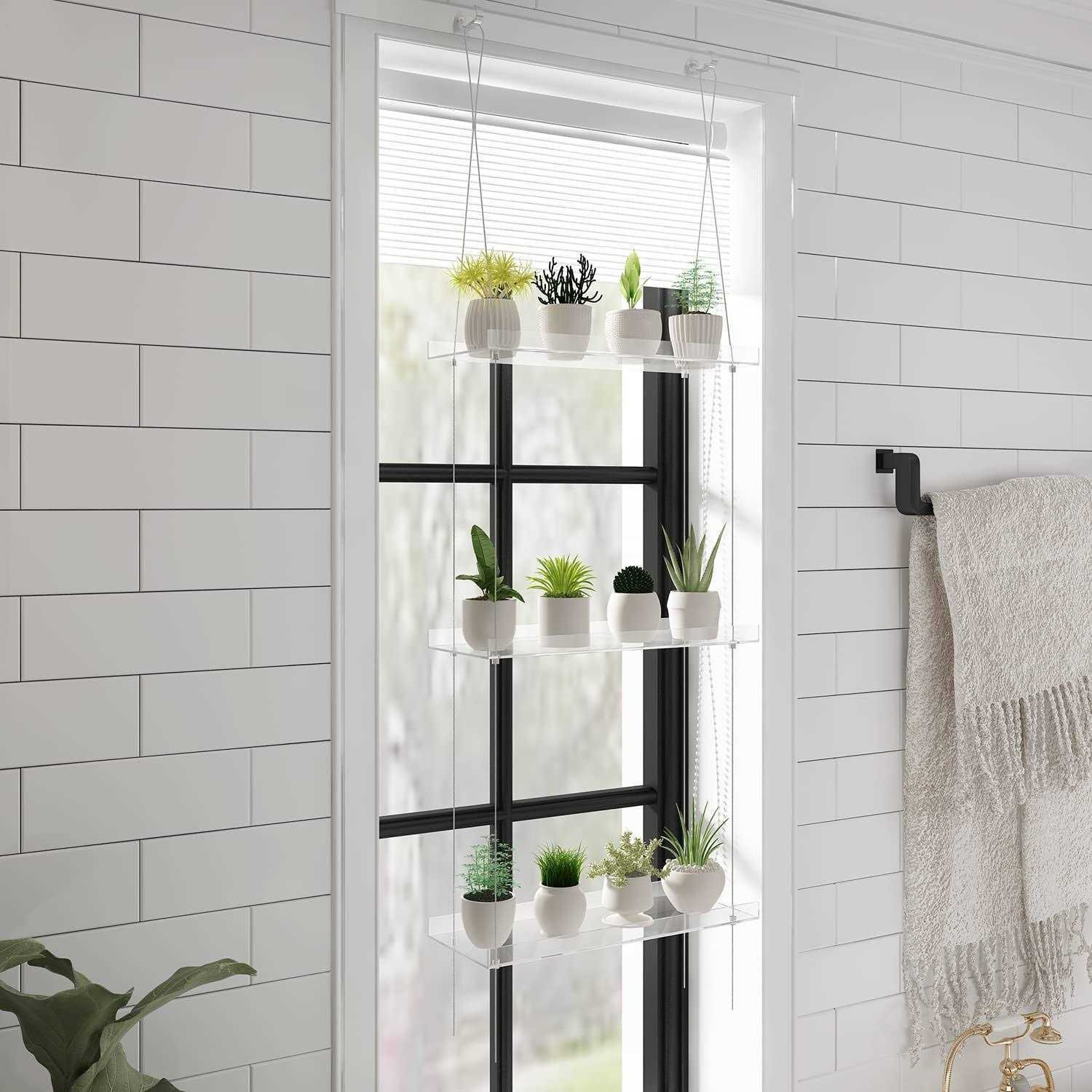 Hanging Acrylic Shelves for Windows Clear Window Wall Plant Stand Shelf for Kitchen Window