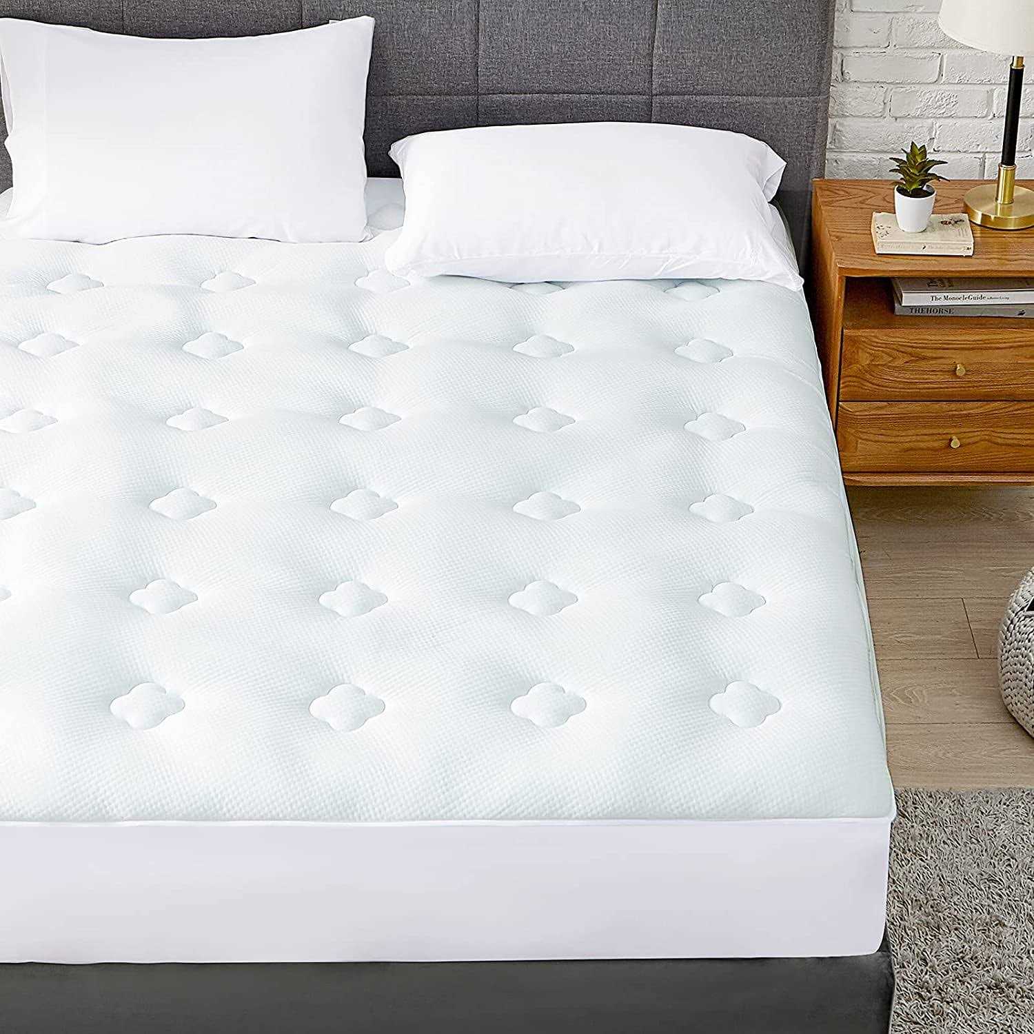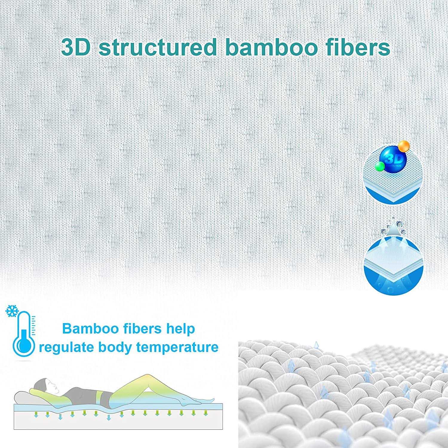 SUPORTIVE MEMORY FOAM LAYER – Hansleep memory foam mattress topper has a specifically-designed structure of a combination of memory foam layer with cooling gel infused and down alternative fillings layer, which will greatly to distribute weight evenly and alleviate pressure at the different contact points of the body. Hansleep memory foam mattress pad is a great companion especially for a firm mattress. PREMIUM BAMBOO SURFACE – The breathable bamboo surface of the mattress topper will absorb night sweat, together with the gel infused in the memory foam, to ensure a cool and comfortable sleep environment for you. DEEP POCKET DESIGN – The deep pocket mattress cover can be easily stretched up to 21 inches deep for universal use, and will always keep your mattress in the right place. ULTRA SOFT & DURABLE FABRIC – The bamboo mattress topper has stronger fade and stain resistance, and it is softer, more breathable and more durable. This memory foam mattress cover will provide you with a comfortable and relaxing sleep experience. CARE INSTRUCTIONS – As Vacuum packed, it may look thinner once unpacked, please give it two days to regain its shape and thickness. Machine washable with cold water, gentle cycle only, tumble dry low. DO NOT IRON. DO NOT DRY CLEAN.