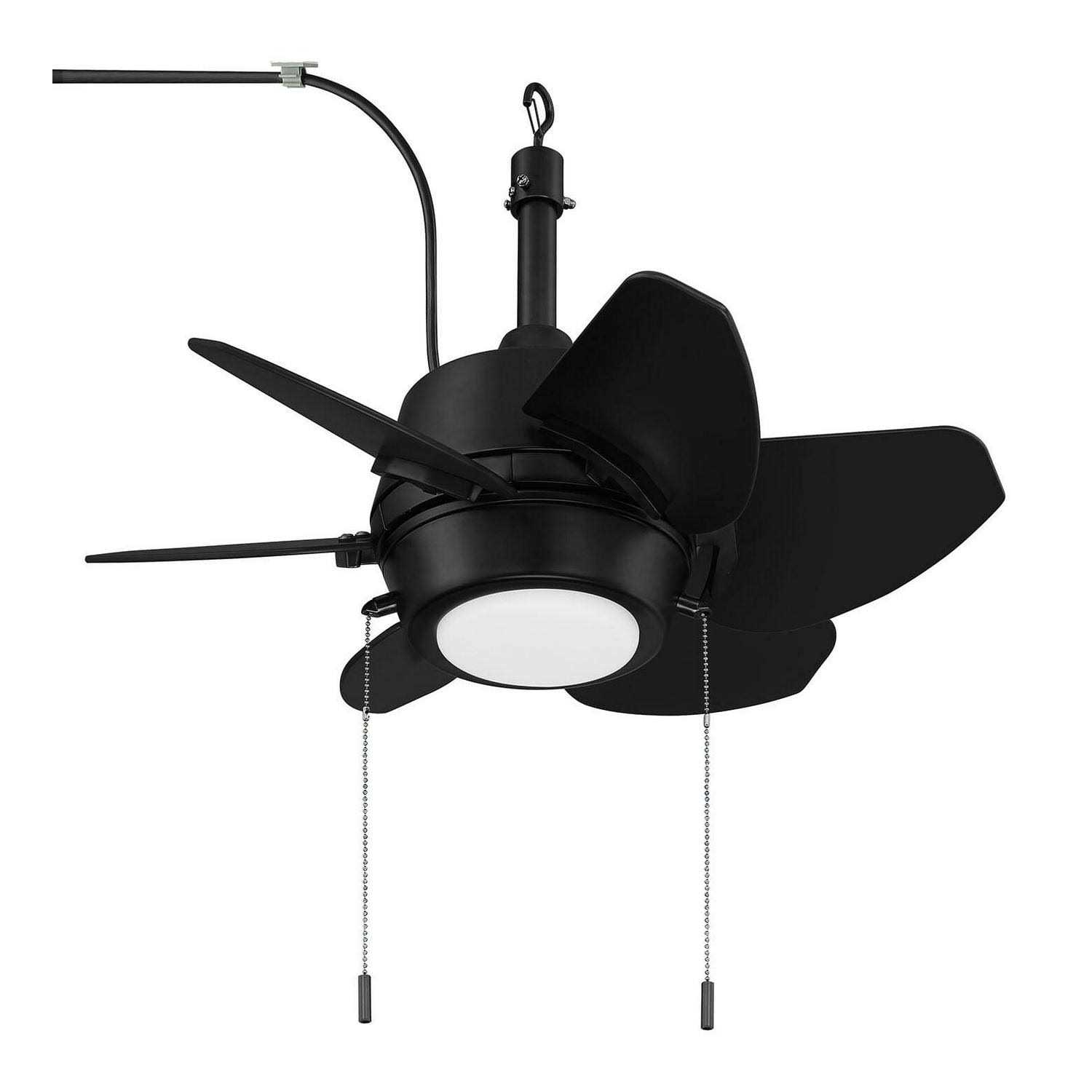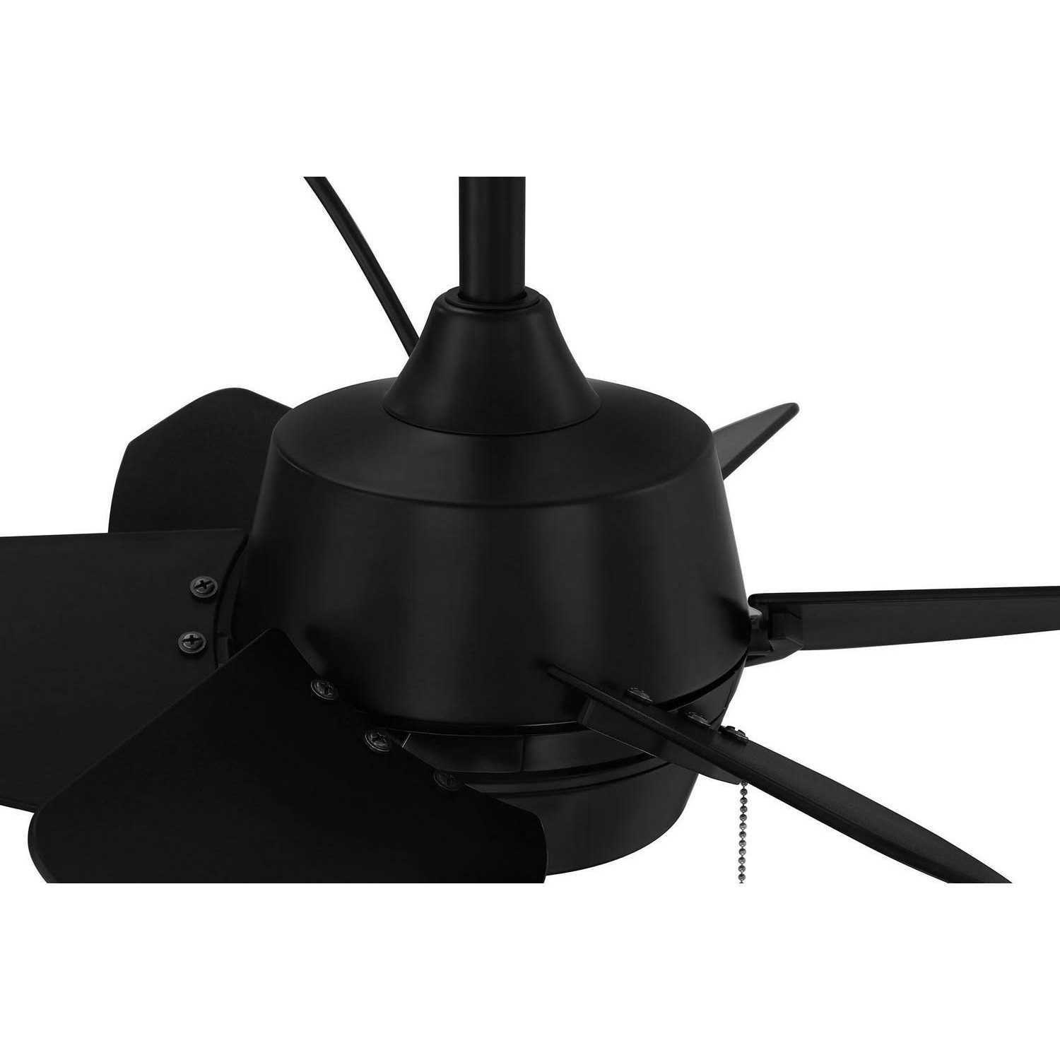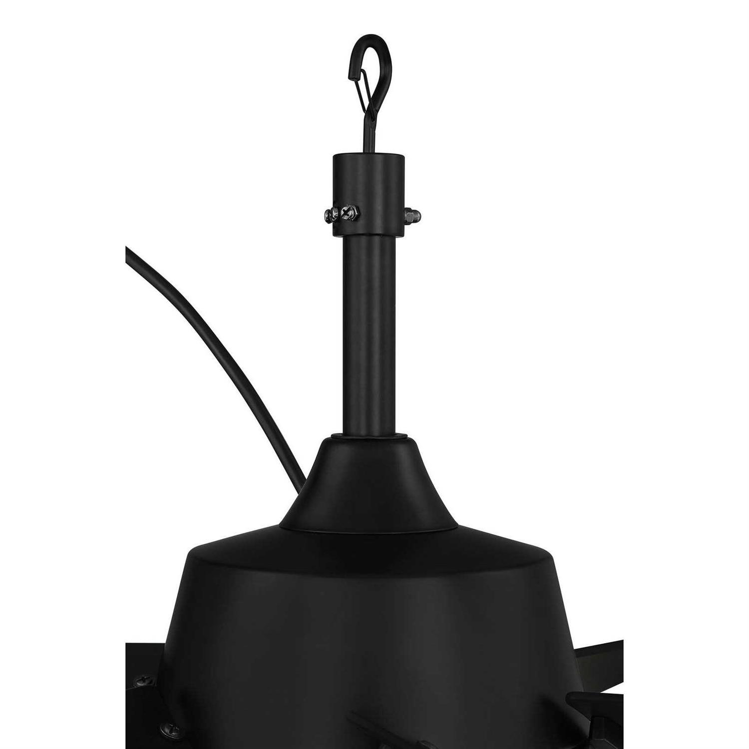 This unique contemporary design ceiling fan implements a space saving design, perfect for porches, patios, or gazebos. Styled in a matte black finish, this fan will be the star of your outdoor entertaining area. This fan is wet rated, making it ideal for use in any season, indoors or out.