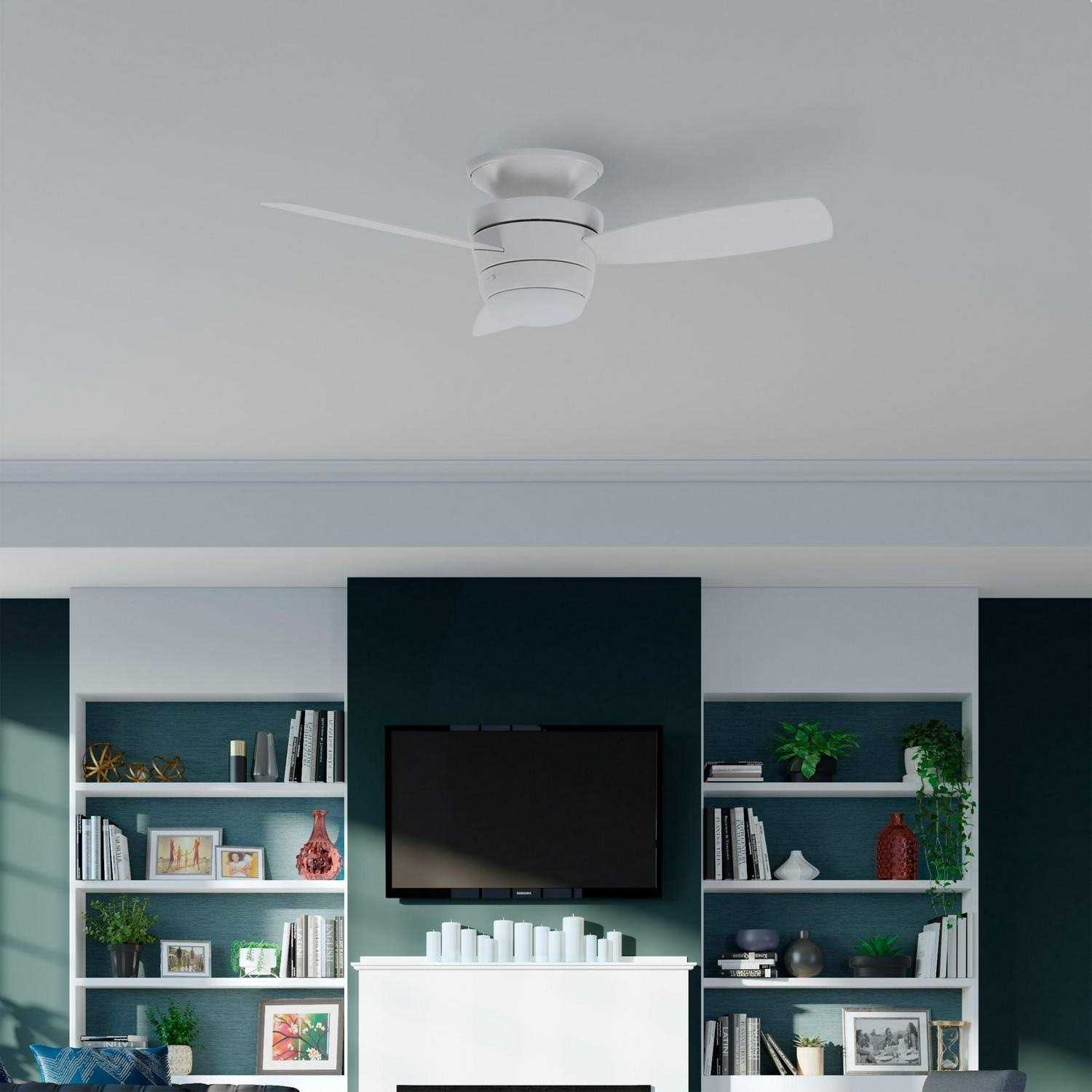 White finish ceiling fan from the Mazon collection features 3 updated reversible blades in white and driftwood finishes to complement today’s design trends. Light kit includes a matte opal glass lens and integrated 18-watt LED light source with dimming feature. Convenient learning remote allows you to control the light and the fan speed from anywhere in the room. Flush mount only, ideal for standard or lower ceilings. Reverse airflow feature allows you to change direction seasonally to push cool air down in the summer or distribute warm air evenly in the winter. Light kit provides 1400 lumens, 3000K color temperature and 90 CRI.