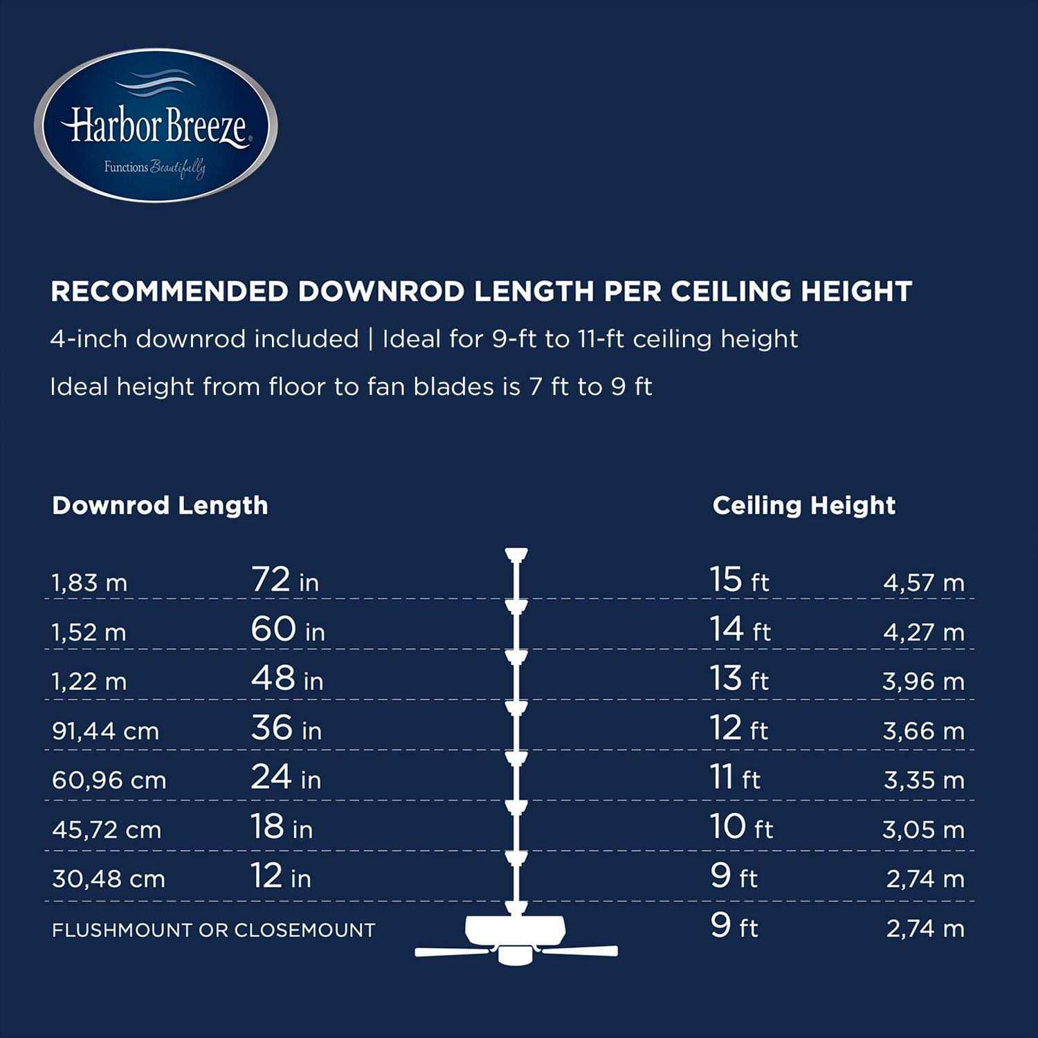 This multi-position ceiling fan can be hung flush with the ceiling where more walk-through space is, on standard ceilings with a 4-in downrod (included) or on angled ceilings. Easy-to-use pull chains included for adjustments to the speed settings and light output; it is also compatible with universal ceiling fan remote controls (remote not included and remote receiver installation required). 4- Arm light kit with frosted glass shades; E26 A15 LED bulbs included. 52-in fan provides airflow up to 4950 CFM, making it ideal for medium to large sized rooms. 52- in ceiling fan with airflow up to 4950 CFM is deal for large to medium spaces. 3 speed settings make it easy to maintain the ideal comfort level. Reversible motor efficiently circulates cool air in the summer and warm air in the winter, cutting down on energy costs. Transitional style.