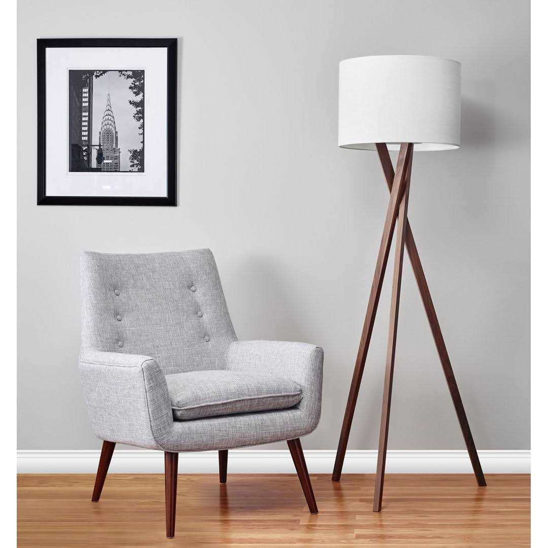 Add some mid-century modern style and plenty of light to your space with this floor lamp. The base is made from solid wormwood and features three legs that cross at a central point to create tripod support. Up top, the linen drum shade diffuses the light from a 150W bulb (not included) throughout your space. This light has a 3-way switch so you can turn it from off, to low and high levels of light. It measures 63 tall, making it ideal in that empty corner next to your sofa.