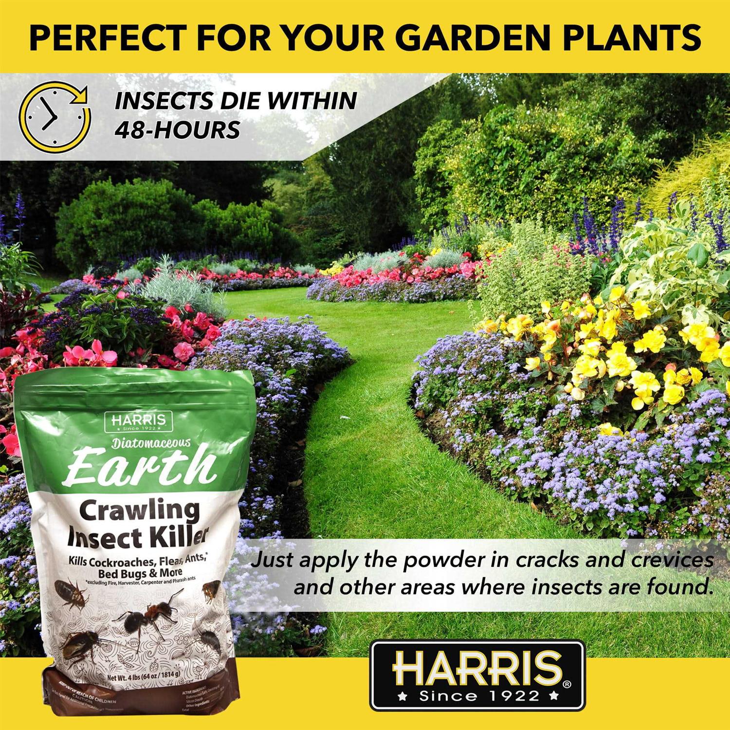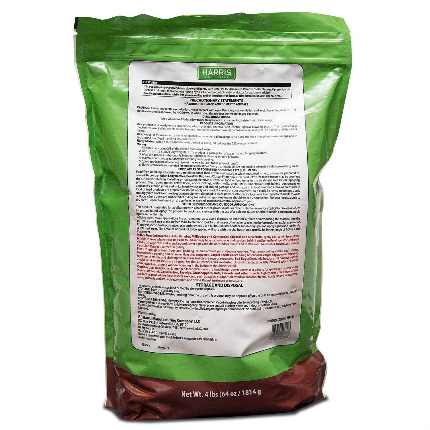 Harris Diatomaceous Earth Crawling Insect Killer uses diatomaceous earth to kill roaches, fleas, ants, bed bugs, and more. Harris Diatomaceous Earth Food Grade is OMRI listed with the Organic Materials Review Institute and meets organic use standards. Harris Diatomaceous Earth Food Grade (DE) is composed of 100% ground freshwater DE, with no additives. Insects that come in contact or ingest this powder die within 48-hours. Just apply the powder in cracks and crevices and other areas where insects are found. Harris Diatomaceous Earth Food Grade is chemical free and completely safe to use around children and pets.