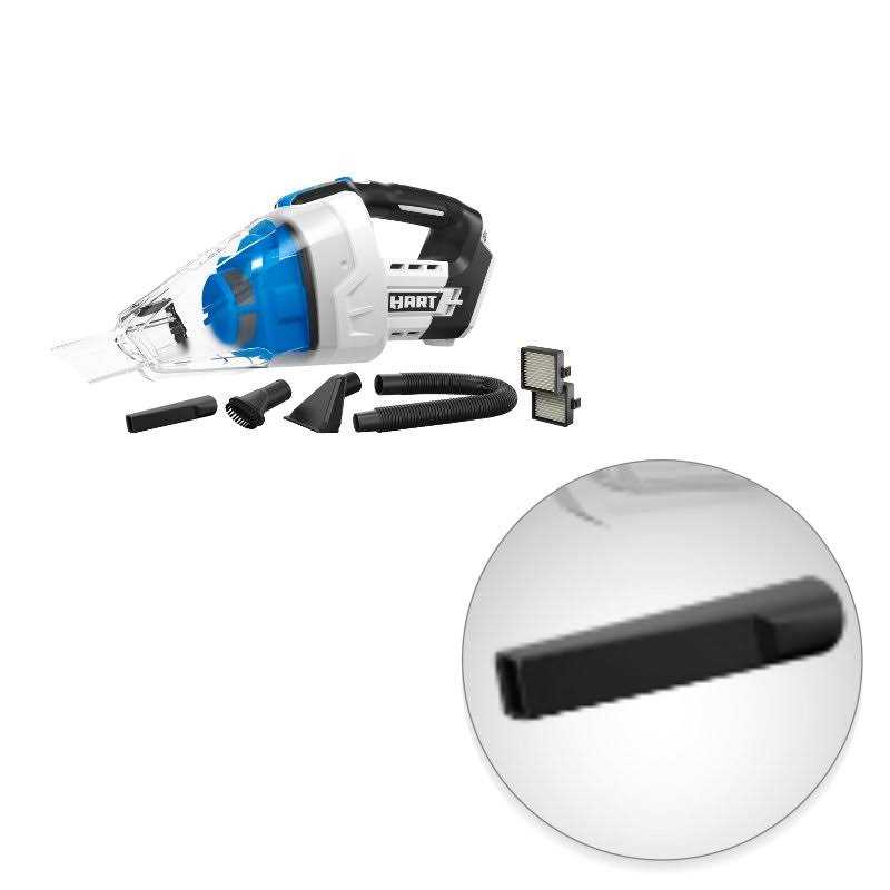 HARTs 20V Automotive Hand Vac offers a convenient and versatile solution for cleaning various messes. Its 2′ extension hose enables reaching inaccessible areas in your vehicle, while the two newly included pleated paper filters ensure prolonged use. Notable features like the lock-on switch and the adaptable dust cup for multiple vacuum accessories enhance its usability. Designed with the user in mind, its portable nature and thoughtful features transform mundane cleaning into a seamless experience. Whether tackling crumbs or debris, the HART 20V Automotive Hand Vac is a testament to reliability, ensuring a pristine vehicle interior each time you use it. It is also compatible with all HART 20V Batteries (Battery Not Included), making it an excellent addition to your HART 20V Tool collection!