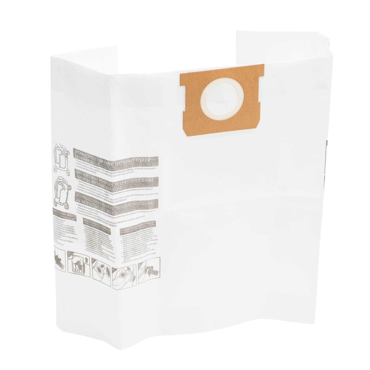 HART standard dust collection bags fit 10-16 gallon HART wet/dry vacuum models and most other 10-16 gallon standard wet/dry vacuums. Dust bags increase filtration by keeping smaller particles contained in the unit and making clean-up easier. VDBL 3701 dust bags can be used when vacuuming household debris, dirt, and sawdust. For dry pick-up only. Includes: (3) 10-16 gallon standard dust collection bags. Do not use the collection bag to vacuum hazardous or toxic materials. Do not vacuum anything that is burning or smoking, such as cigarettes, matches, or hot ashes.