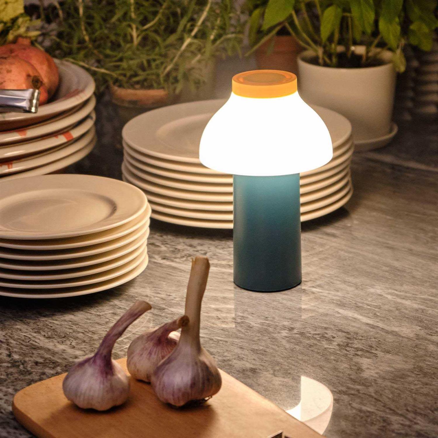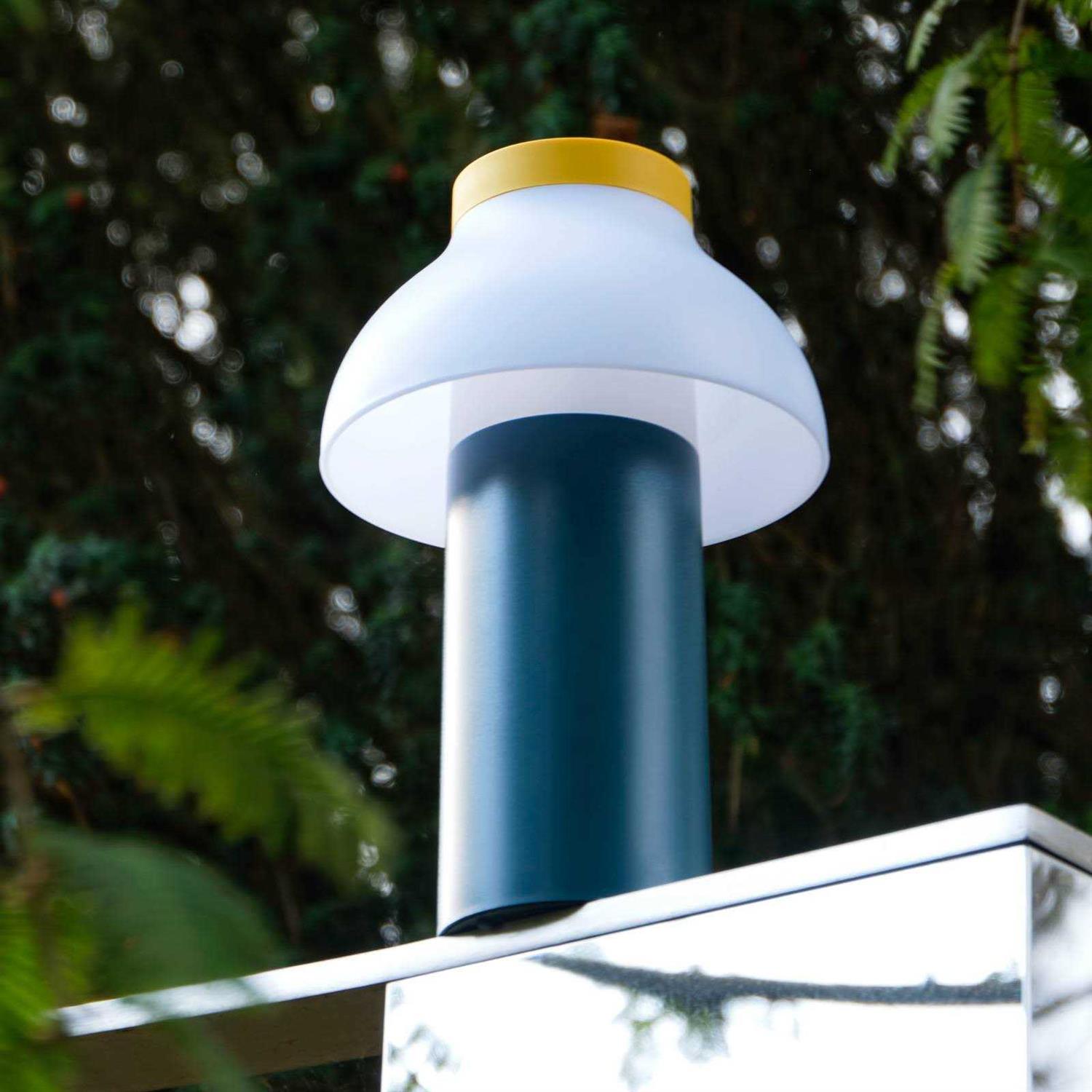 LED table lamp PC Portable with integrated rechargeable battery Refined and portable and completely self-sufficient thanks to the integrated rechargeable battery is the battery-powered LED table lamp PC Portable, a design by designer Pierre Charpin, which can provide decorative lighting both indoors and outdoors in a variety of places. The table lamp is made of sturdy plastic with a matte, scratch and water resistant finish in beautiful color combinations and various solid colors. The light source in the table lamp is not visible due to a polycarbonate diffuser. The PC Portable table lamp is a light source and beautiful decoration on indoor and outdoor tables, restaurants, cafes and many more. It shines for at least 10 hours when the battery is full, before it needs to be recharged via USB cable. Pierre Charpin designed the PC Portable table lamp for the Danish company HAY. The interplay of form and color characterizes the designs of the designer, who lives and works in Paris and has an artistic background. Elementary shapes in combination with colors are a constant aspect in his work.