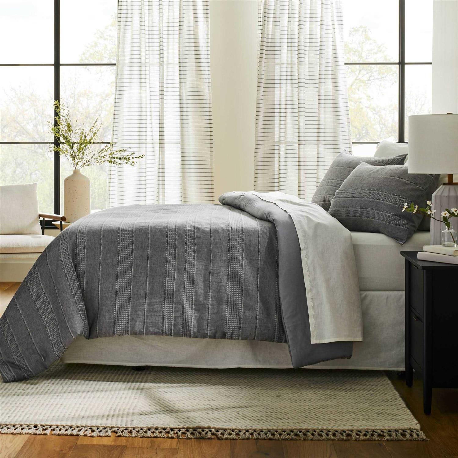 This solid-color comforter bedding set makes a versatile addition to the top of your bed. It includes two shams and a matching comforter that’s detailed with pick-stitch stripes to bring a textured look to your bed. Made from a soft and lightweight fabric, this comforter bedding set brings you year-round comfort, while its machine-washable design makes for easy care. Hearth and Hand with Magnolia: Gather ∙ Create ∙ Enjoy