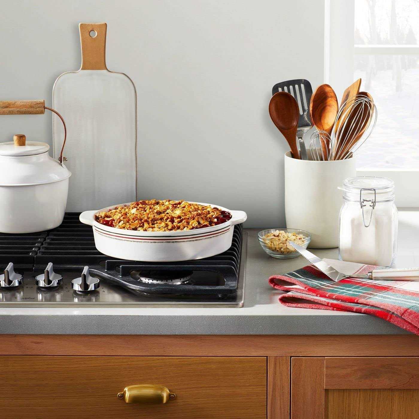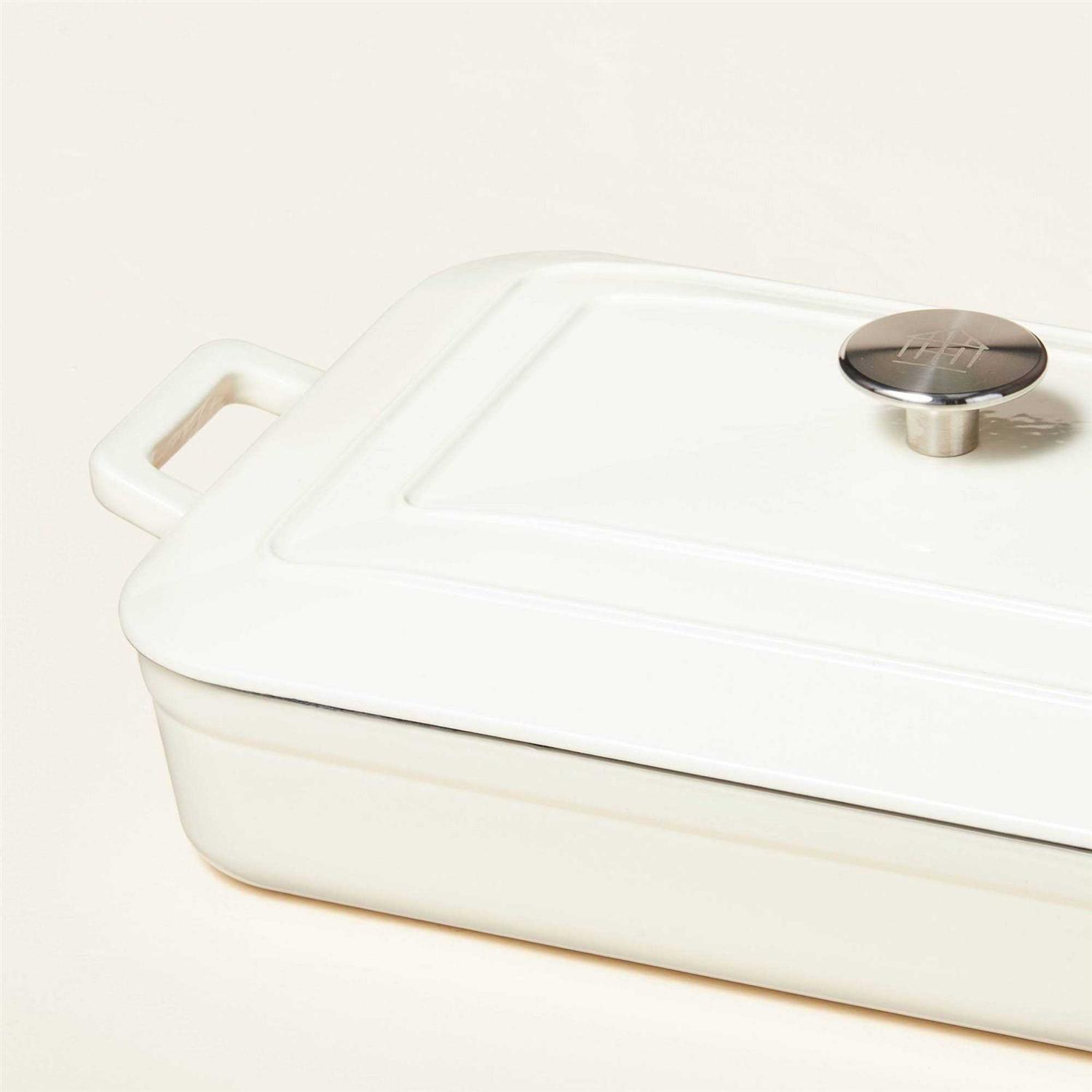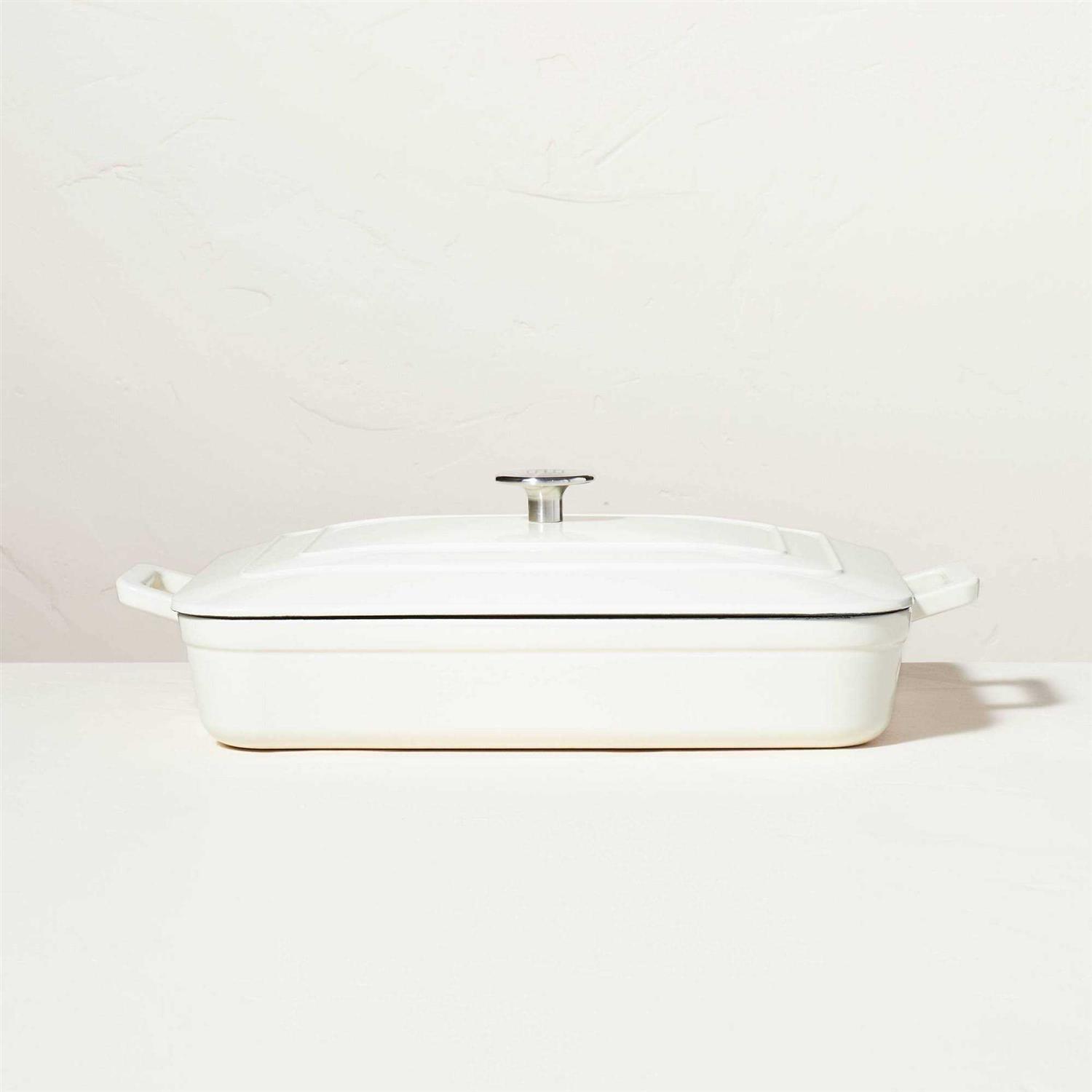 Whether you’re cooking for yourself or a loved one, this Enamel Coated Casserole/Bakeware Dish with Lid from Hearth and Hand with Magnolia will help you cook with ease. Made with cast iron, this rectangle bakeware dish is perfect for searing meat, braising and more. This cream casserole dish with lid helps keep your food hot for longer. With the top handle of the lid, you can easily check whether the dish is ready or not, and with the extended handles you can easily hold and place it on the counter or table when it’s ready to serve. Celebrate the everyday with Hearth and Hand — created exclusively for Target in collaboration with Magnolia, a home and lifestyle brand by Chip and Joanna Gaines. Built upon our shared commitment to giving back to our communities, these pieces reveal the beauty of everyday moments shared with family and friends.