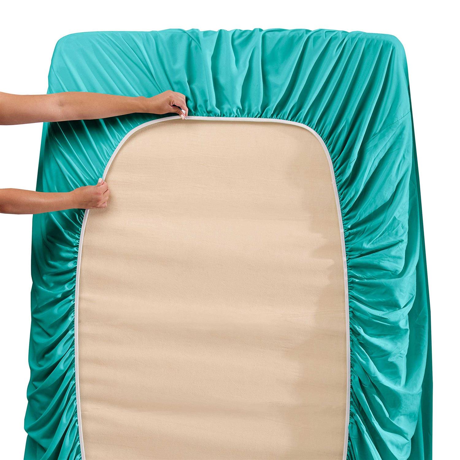 Extra Deep Pocket Fitted Sheets These are the best sheets for extra tall & large mattresses, and great for mattresses with a 3-inch or 4-inch topper, double pillow top, memory foam topper or thick mattress pad. A stretchable elastic all around the entire sheet ensures a tight, secure fit that wont ride up or move around in middle of the night, staying smooth, snug and wrinkle-free. Soft and Silky These deluxe sheets are made of luxuriously silky brushed microfiber fabric. Its lustrous and cool to the touch, with a softness thats unmatched by cotton Breathable and Hypoallergenic Our Premier brushed microfiber fabric is breathable and wicks perspiration and moisture away. Unlike cotton, microfiber repels dust mites and other allergens, making it a natural choice for allergy sufferers. Pet Friendly No worries about pet nails and claws! Our bedding is less likely to tear or snag, even when you share your bed with your pets. So go ahead, build a pillow fort and snuggle inside with your best friend. Lightweight, breathable and cool to the touch, our dreamy, soft bedding will create an unforgettable sleeping experience!