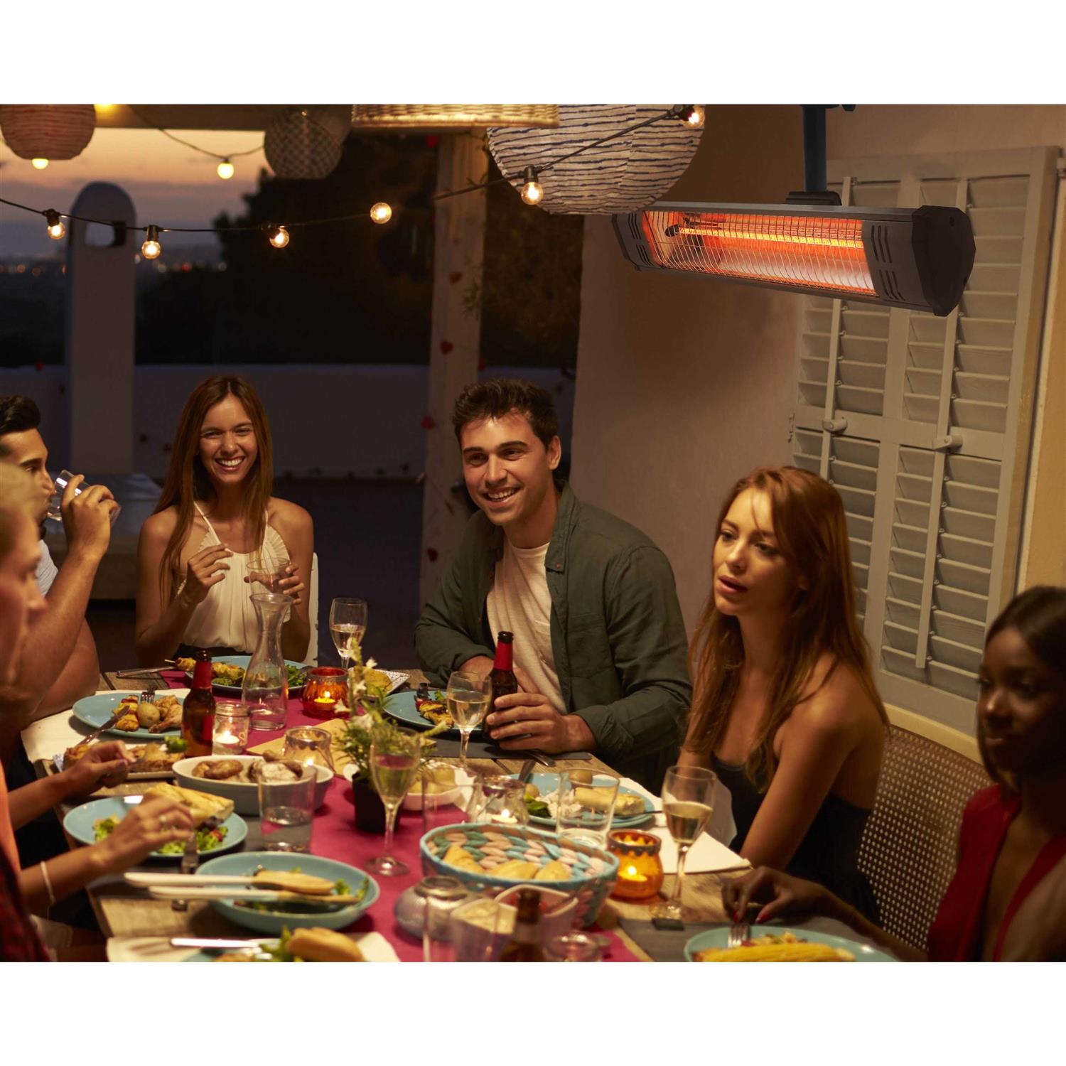 The Tradesman 1500 Outdoor Infrared Quartz heater is a 1500-Watt heater that provides gentle warmth for areas where floor space is at a premium and with the flexibility to install it on the included wall/ceiling mount. The Tradesman 1500 provides radiant heat energy, which instantly warms people and solid objects within the beam of heat. It is ideal for patios, balconies, workshop, garage, etc. It produces an output of 1500-Watt (5200 BTU) and is callus electrically certified. Requiring no gas or other flammable fuels, the carbon fiber heating element heats very efficiently. Its features include 1500-Watt of gentle, radiant heat, an anodized extruded aluminum alloy frame, an aluminum reflector that evenly concentrates heat outward. Uses a standard 120-Volt wall outlet. It is protected against rain and dust (IP35 certified). Color: Silver.