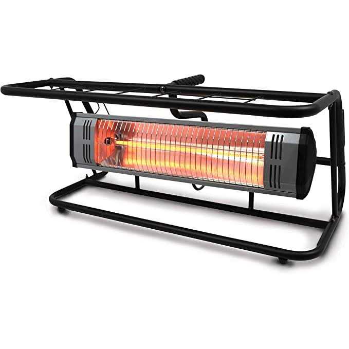 The Tradesman 1500 Outdoor Infrared Quartz heater is a 1500-Watt ceiling/wall mounted heater that provides gentle warmth for areas where floor space is at a premium and with the flexibility to install it on a wall or the ceiling. The Tradesman 1500 provides radiant heat energy which instantly warms people and solid objects within the beam of heat. It is ideal for patios balconies workshop garage etc. It produces an output of 1500-Watt 5200 BTU and is cULus electrically certified. Requiring no gas or other flammable fuels the carbon fiber heating element heats very efficiently. Its features include 1500-Watt of gentle radiant heat an anodized extruded aluminum alloy frame an aluminum reflector that evenly concentrates heat outward a mounting bracket that tilts 30 forwards and backward to angle unit as needed and a 6 ft. power cord. Uses a standard 120-Volt wall outlet. It is protected against rain and dust IP35 certified. Color Onyx.
