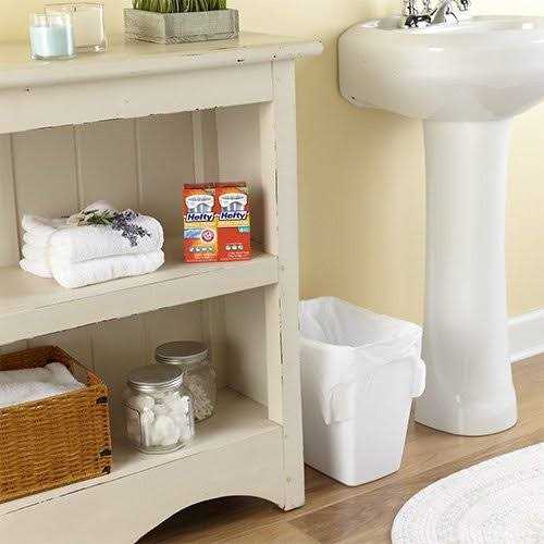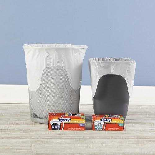 Can Liners by Hefty. Details:Manage trash in your nursery, office, bathroom, car, and more using small garbage bags from Hefty – the only small bags with odor control. All Hefty small bags are perfectly sized for small trash cans, and the scented varieties feature Arm & Hammer odor neutralizing agents that control odors inside the bag and keep smells from getting into your home. Convenient flap ties help keep trash in the can and off the floor when removing and closing the bag. Every package includes one Box Top to help you earn cash for your school. Package contains 26 white, 4-gallon small trash bags with Clean Burst scent.