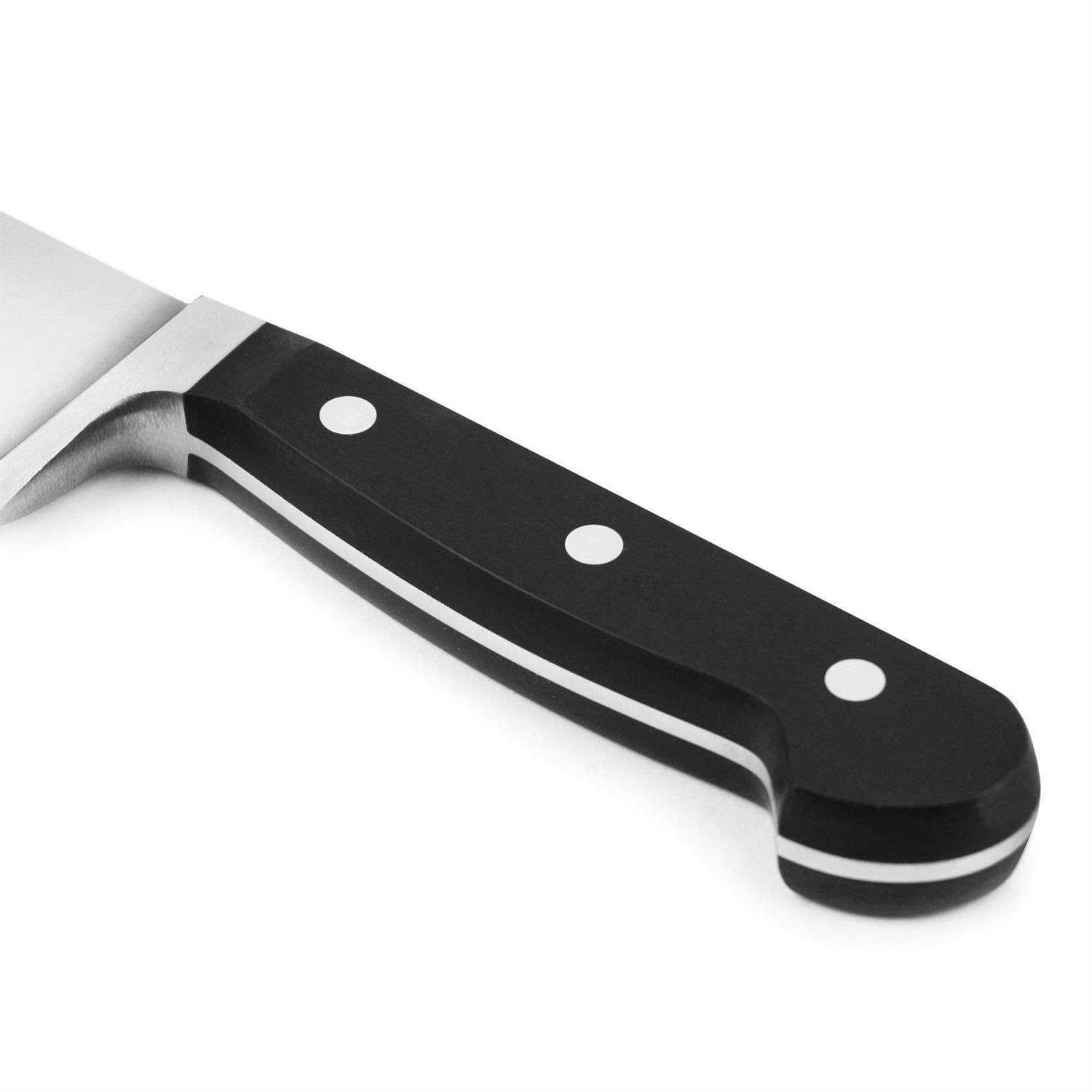 Classic knives are made of high quality stainless steel. The one-piece traditional forged construction provides durability and features a full bolster for added weight, comfort, and safety. Traditional three rivet handle with exposed full tang and full bolster provide a comfortable grip with balance and support.