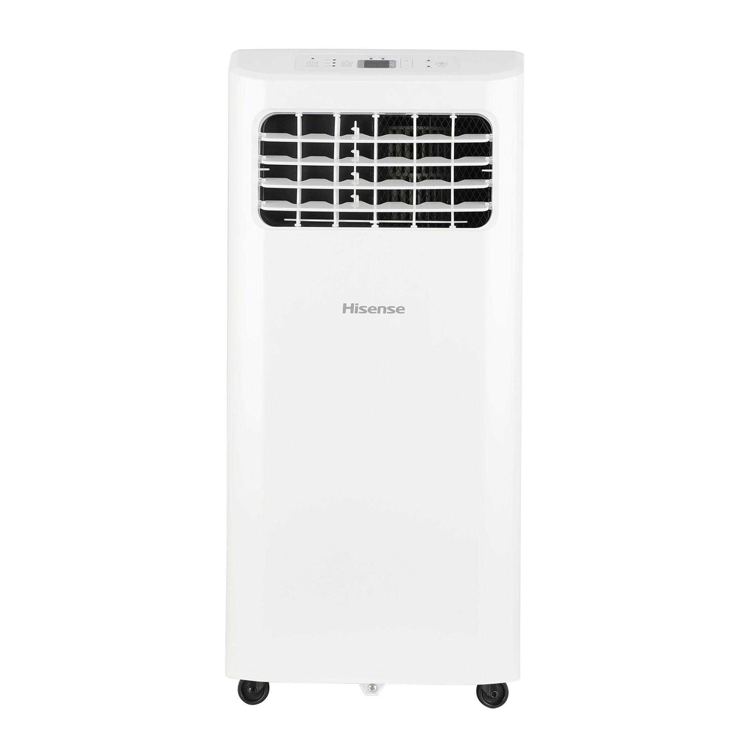 The Hisense AP0522CR1W portable air conditioner is best suited for smaller rooms (150 sq ft or less), delivering 5000 BTU of cooling power. It provides three modes of comfort –cooling, fan, or dehumidifier –allowing you to choose the comfort you want at any time. The convenient drain-free design means you never need to worry about removing condensed moisture, and its compact size is just right for rooms with limited floor space. Smooth, intuitive electronic controls and included remote control put easy operation right at your fingertips.