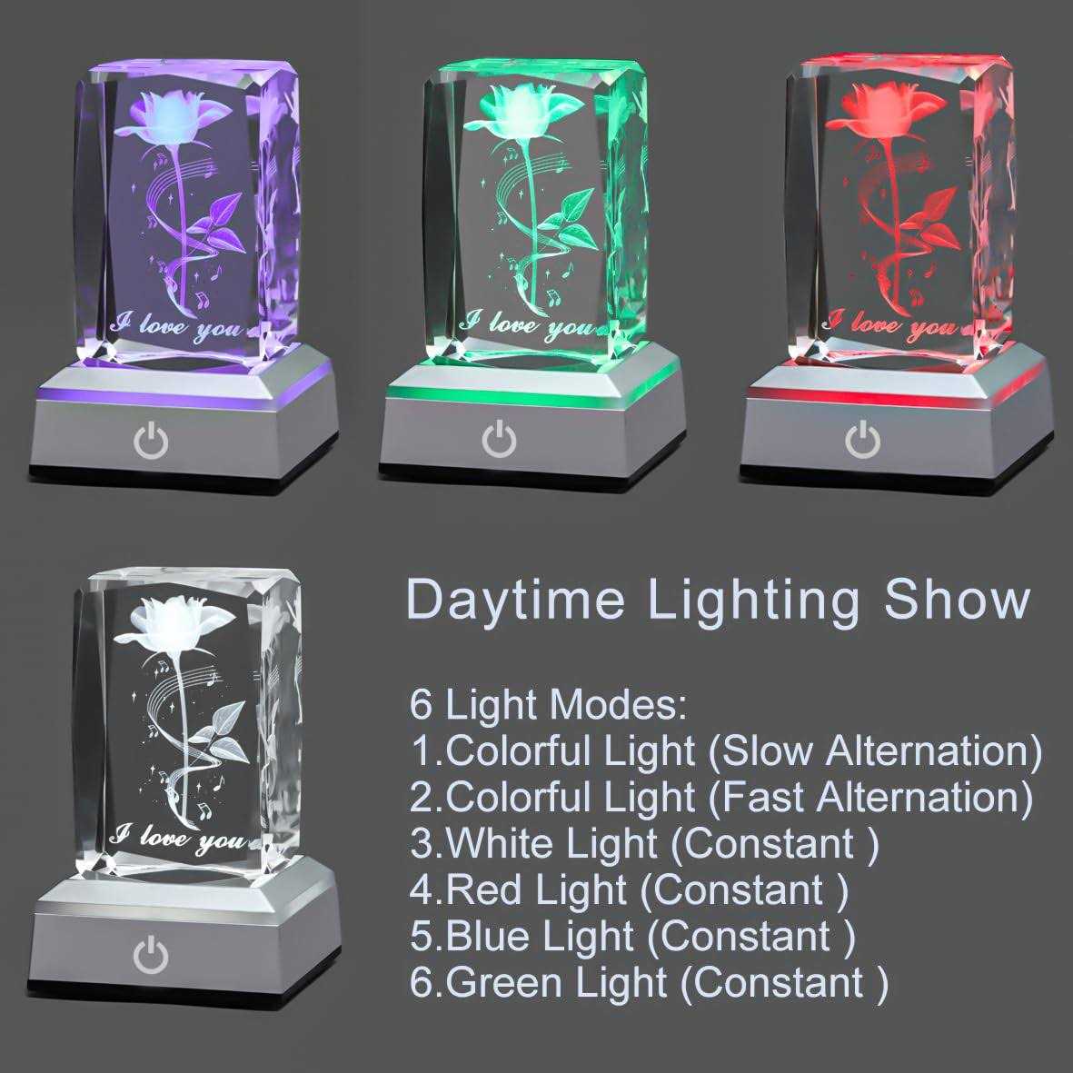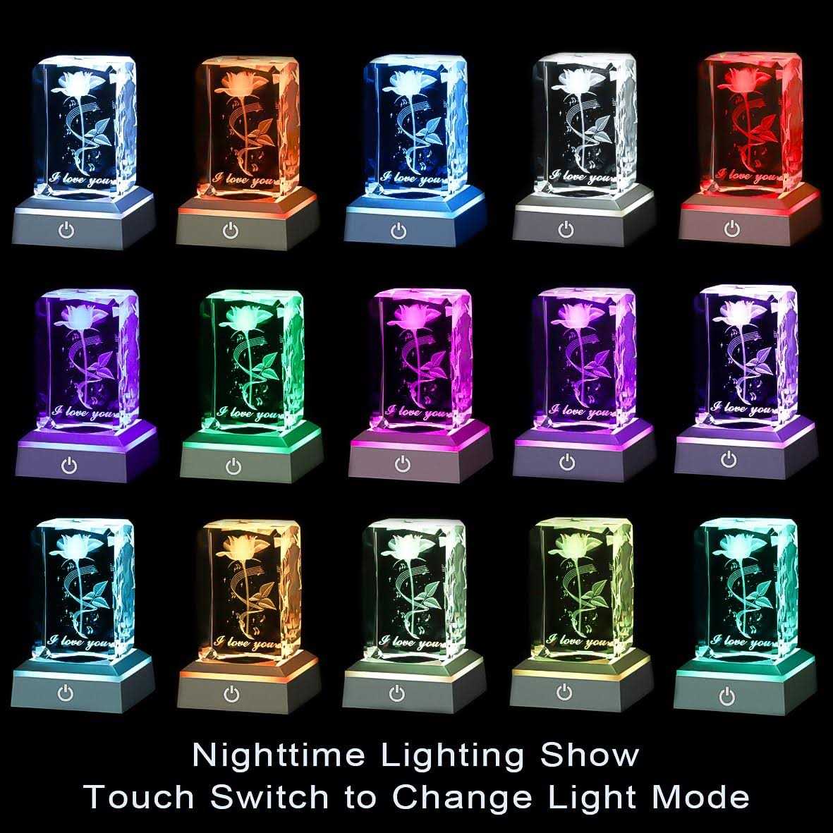 hochance 3D Rose Crystal Multicolor Nightlight I Love You Decolamp