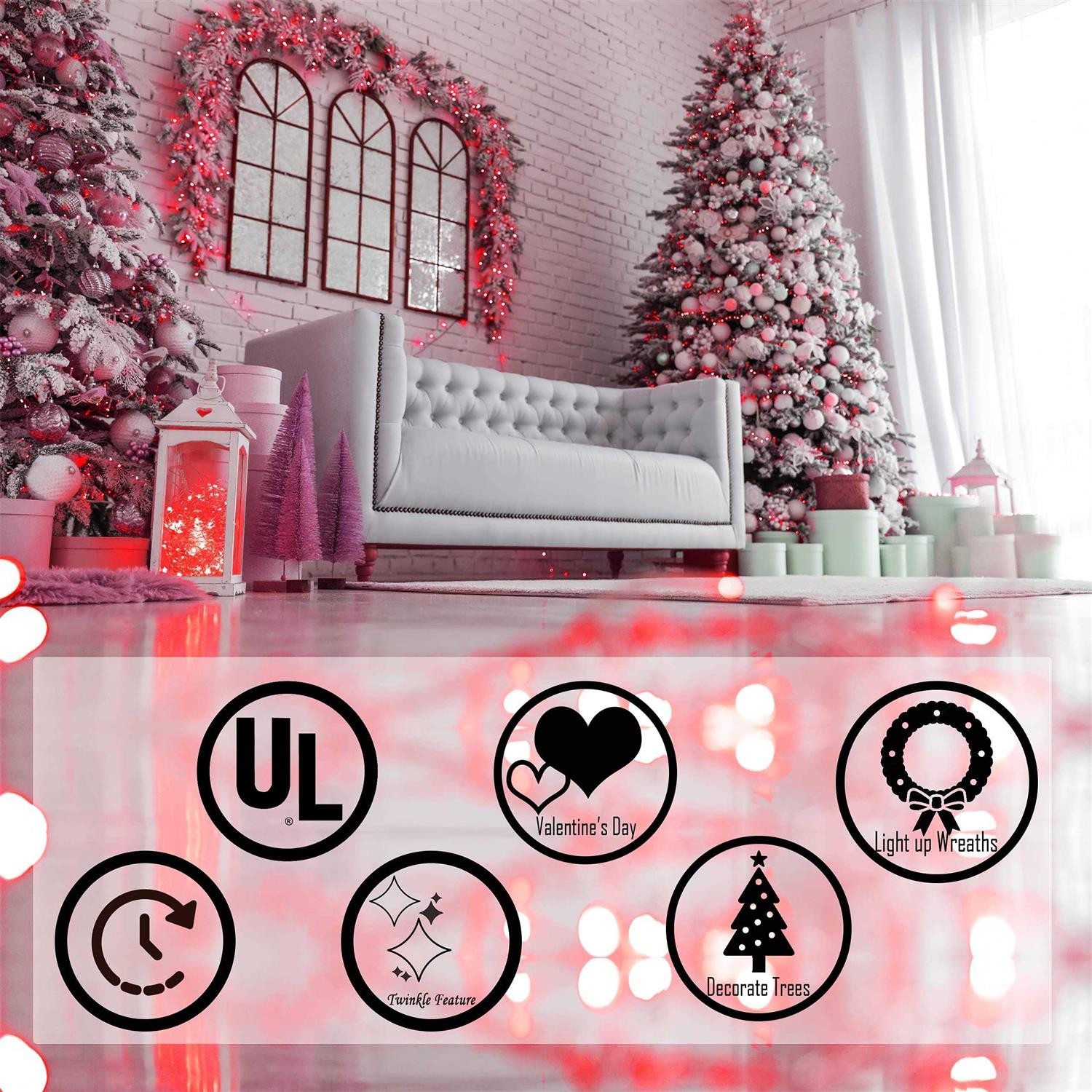 Holiday Essence Pink Christmas String Lights 100 Mini Fairy Lights Set White Wire 20.6 Ft Traditional Valentines Easter Holiday Décor for Home