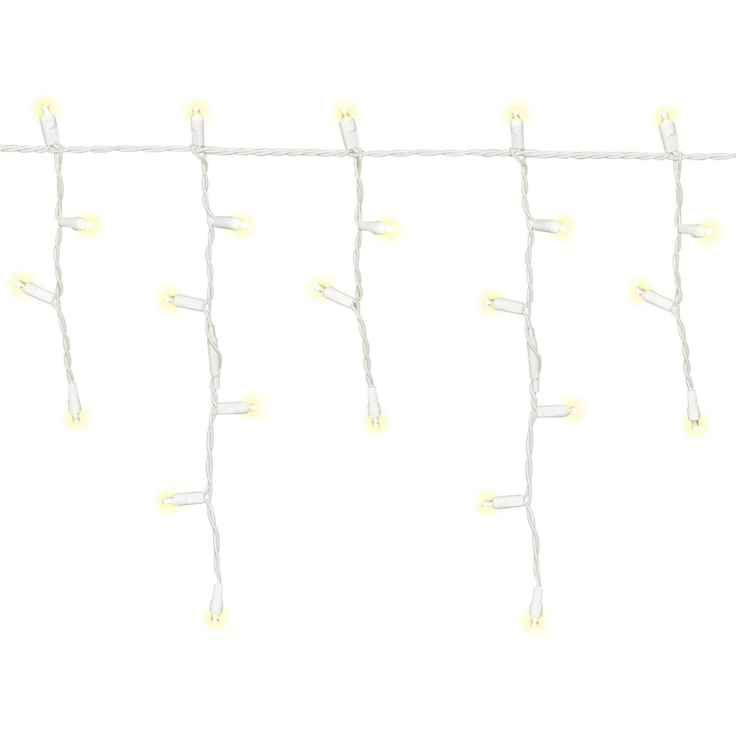 The Holiday Time 200-Count LED High-Density Icicle Christmas Lights will bring a delightful and festive effect to your indoor or outdoor space. The white wiring blends easily with light-colored surfaces. The icicle-style strand provides 15 feet of glimmering glow wherever you use it. You can connect up to 22 sets of this exact same light, which makes them perfect for decorating rooflines, porches, patios, fences, and indoor spaces. These LED high-density icicle lights are available in 4 festive colors: Warm White, Cool White, Red, and Blue. Pair the Holiday Time 200-Count LED High-Density Icicle Christmas Lights with other Holiday Time decorations to bring sparkle and shine to your holiday season.