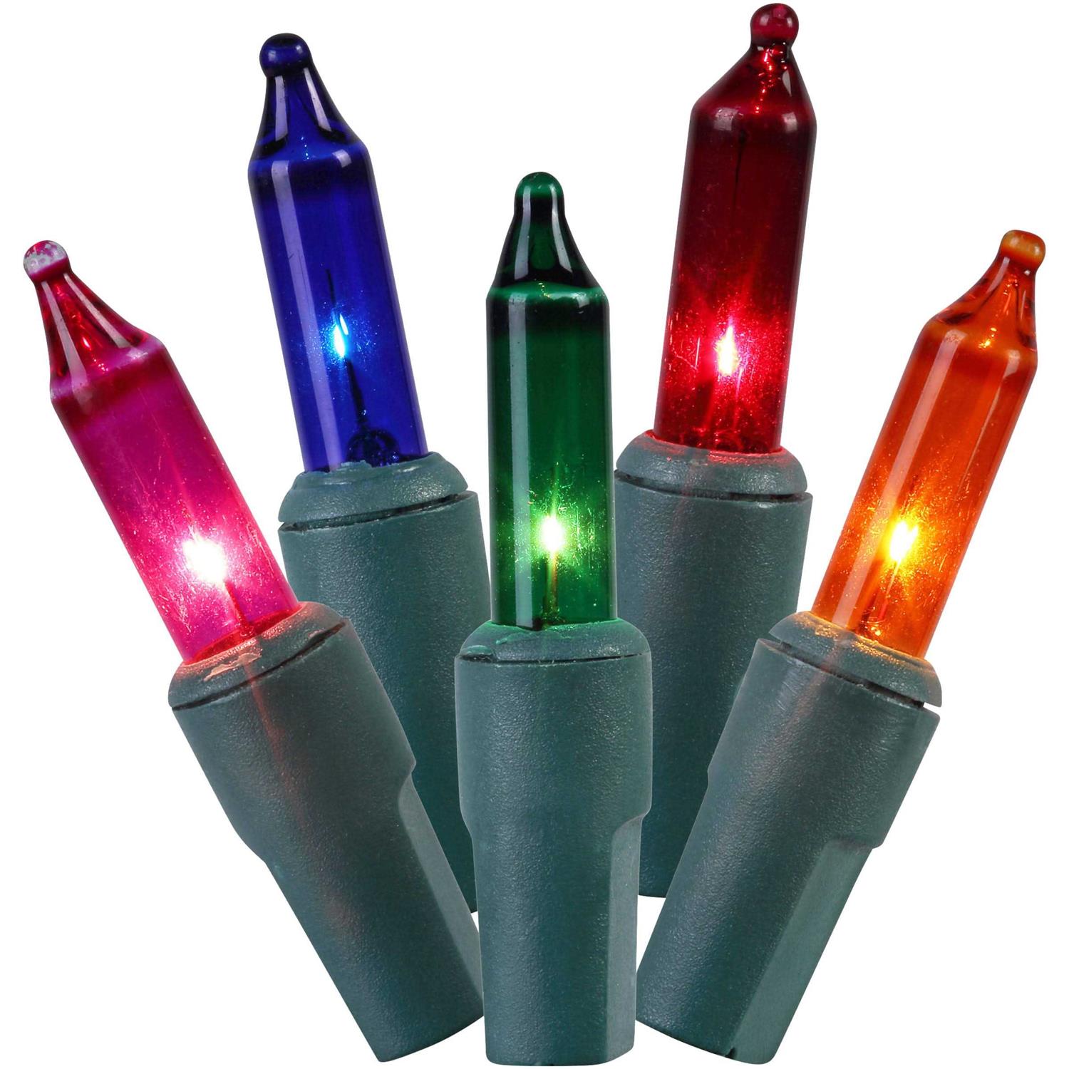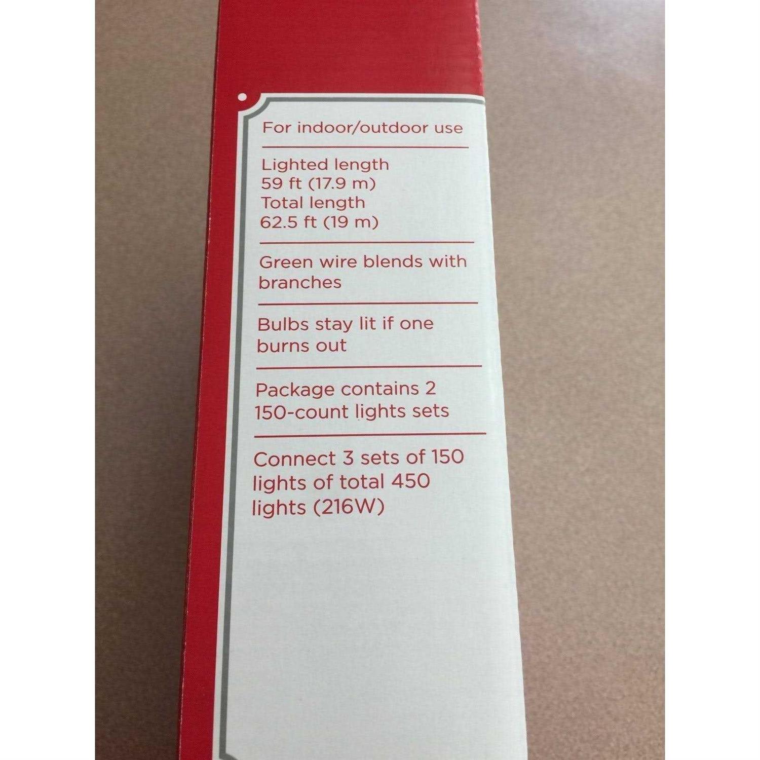 Illuminate your home this year with the amazing Holiday Time Multicolor Mini Christmas Lights. For indoor/outdoor use Green wire blends with branches Bulbs stays lit even if one burns out Lighted length: 59 feet (17.9 meters) Total length: 62.5 feet (19 meters) Package contains 2, 150-count light sets Connect 3 sets of 150 lights of total 450 lights (216W) Spare parts included UL Certified Illuminate your home this year with the amazing Holiday Time Multicolor Mini Christmas Lights. They are suitable for both indoor and outdoor use. These whimsical Christmas lights are ideal for placing on trees, shrubs, roofs and more. You can also use them to decorate gardens, weddings, campers, and parties. End-to-end connectors allow you to hook multiple sets together with ease, and you can connect up to three sets of lights for a brighter display. The bulbs stay lit even if one burns out, and they also come with replacement bulbs and spare fuses to save you any trouble. This package contains two- 150-count light sets and has a total length of 62.5 feet (19 meters). Brighten up your home this season with the Holiday Time 300 Multicolor Mini Christmas Lights.