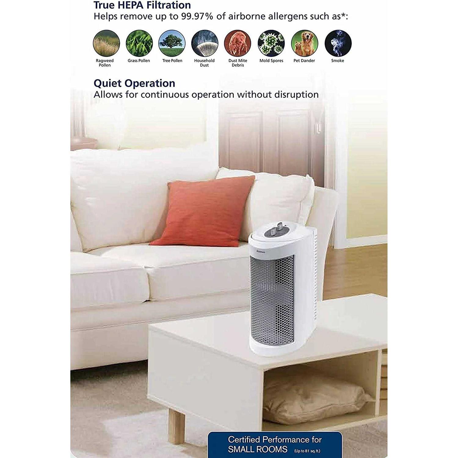 Air purifiers with ionizers help keep your environment free of cross contamination. This holmes allergen remover helps remove micro sized particles of pollen dust mold pet dander and smoke from the air. The quiet device brings about a noticeable difference to the air in your home within just a few hours of use. The holmes air purifier can effectively remove 99.97 percent of airborne allergens. It works best in an area of about 80 square feet. It removes up to 99.97% of airborne allergens from the air that passes through the filter. 3 speed settings, optional ionizer, washable pre-filter, quiet operation. Optional ionizer naturally freshens the air.